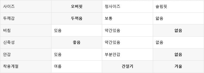 평소 입던 스타일과 달라 만족도가 낮을 수 있습니다