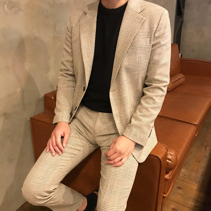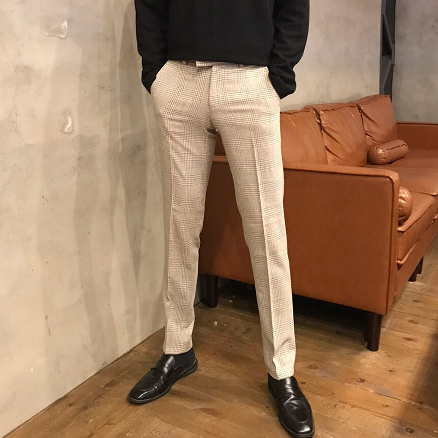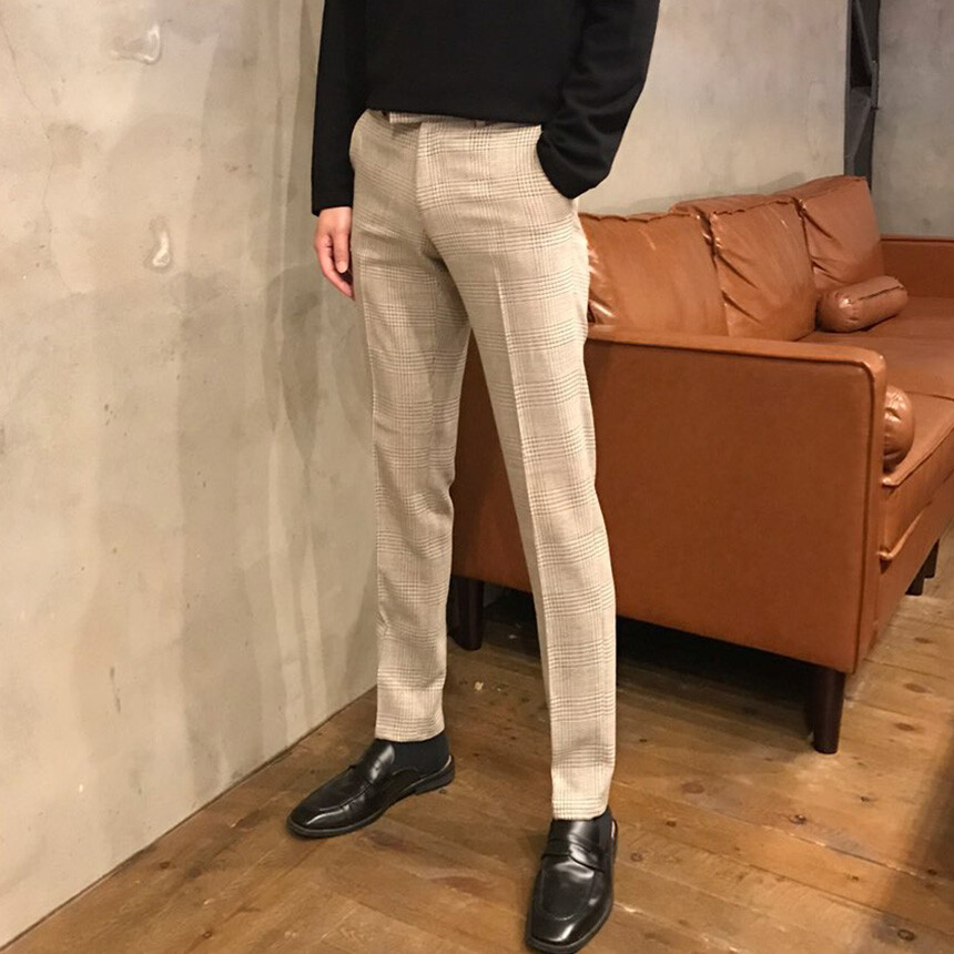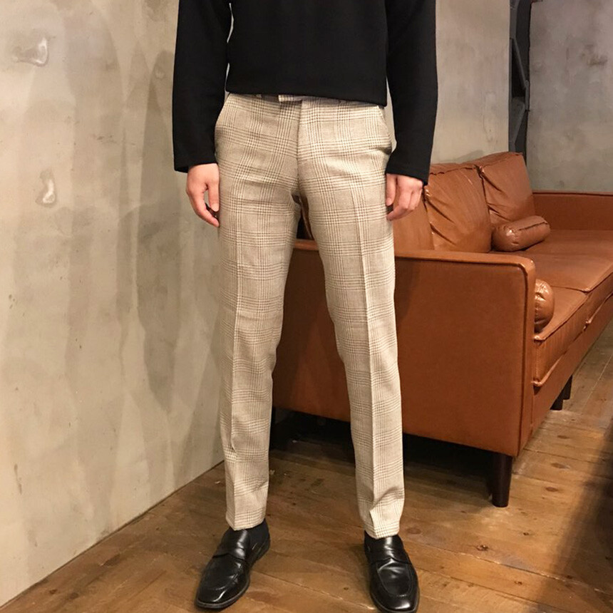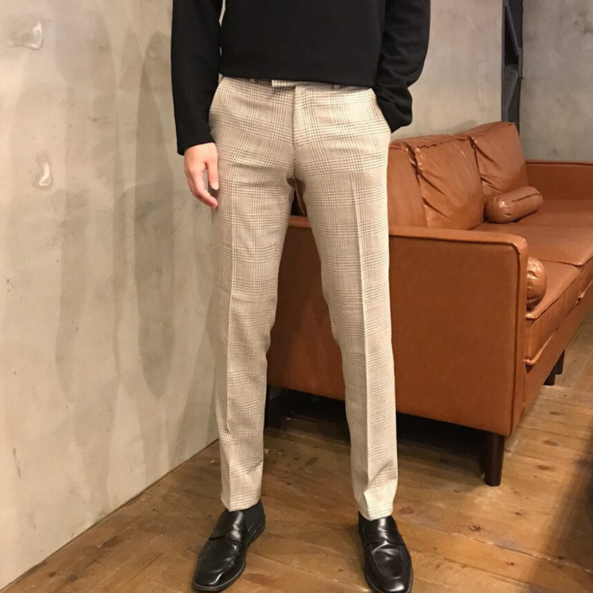 [BXAFLAF1509] 화이트베이지 글렌체크 간절기 슬랙스