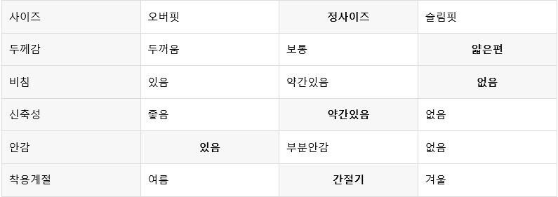 평소 입던 스타일과 달라 만족도가 낮을 수 있습니다