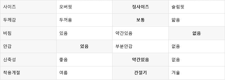 평소 입던 스타일과 달라 만족도가 낮을 수 있습니다