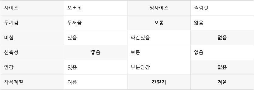 평소 입던 스타일과 달라 만족도가 낮을 수 있습니다