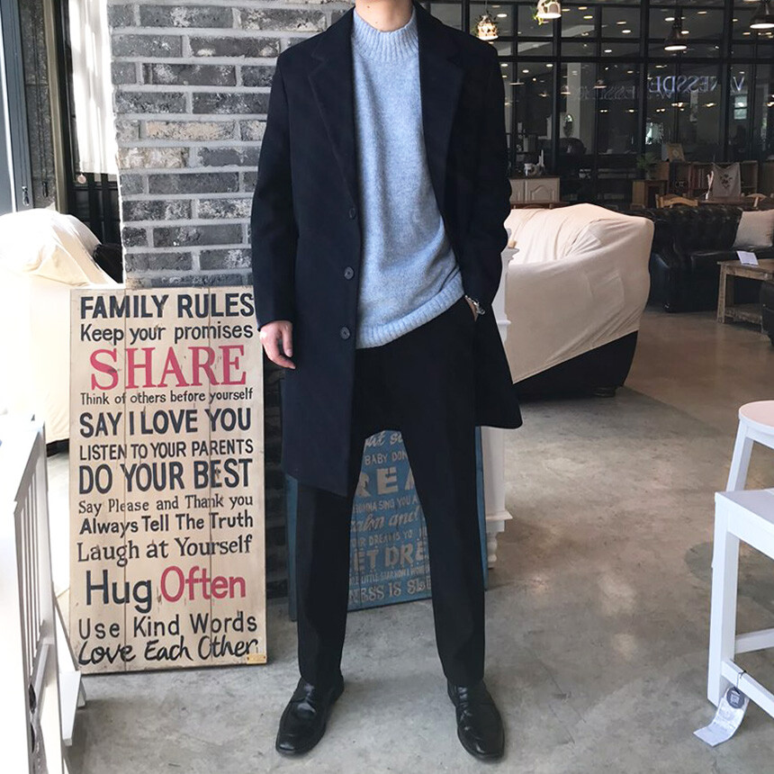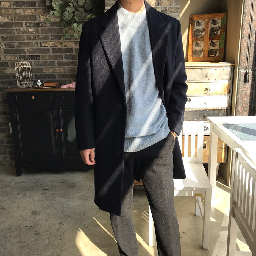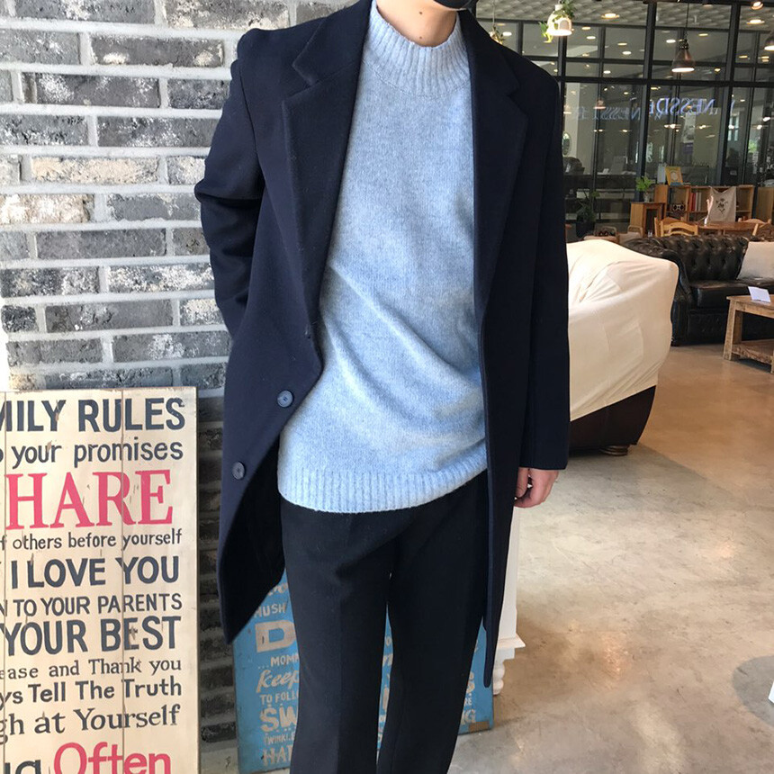 [BXACLAW0022] 진네이비 캐시미어 싱글 루즈핏 코트