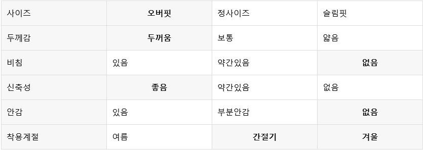 평소 입던 스타일과 달라 만족도가 낮을 수 있습니다