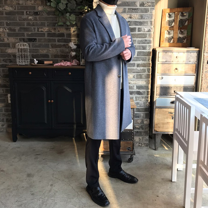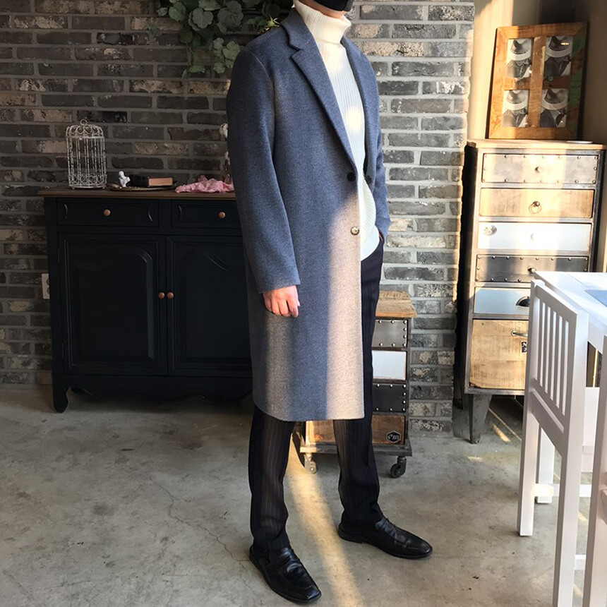 [BXACLAW0032] 차콜 히든버튼 누빔 울코트