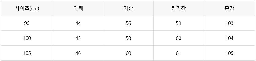 예시)본인사이즈100이면 100-105사이즈 구매 권장