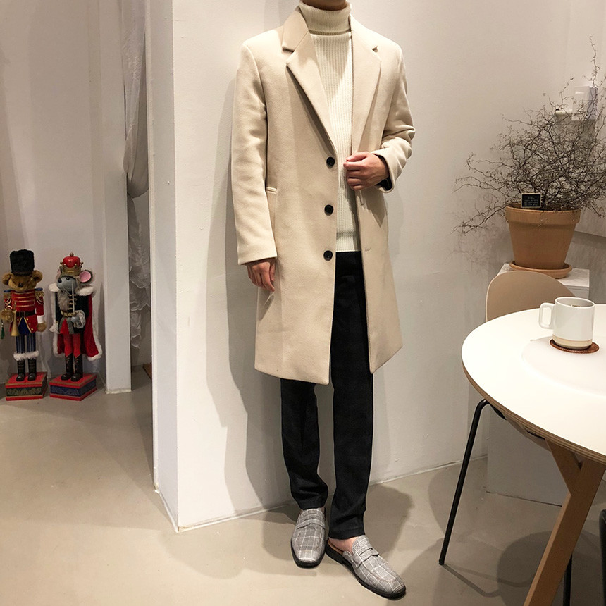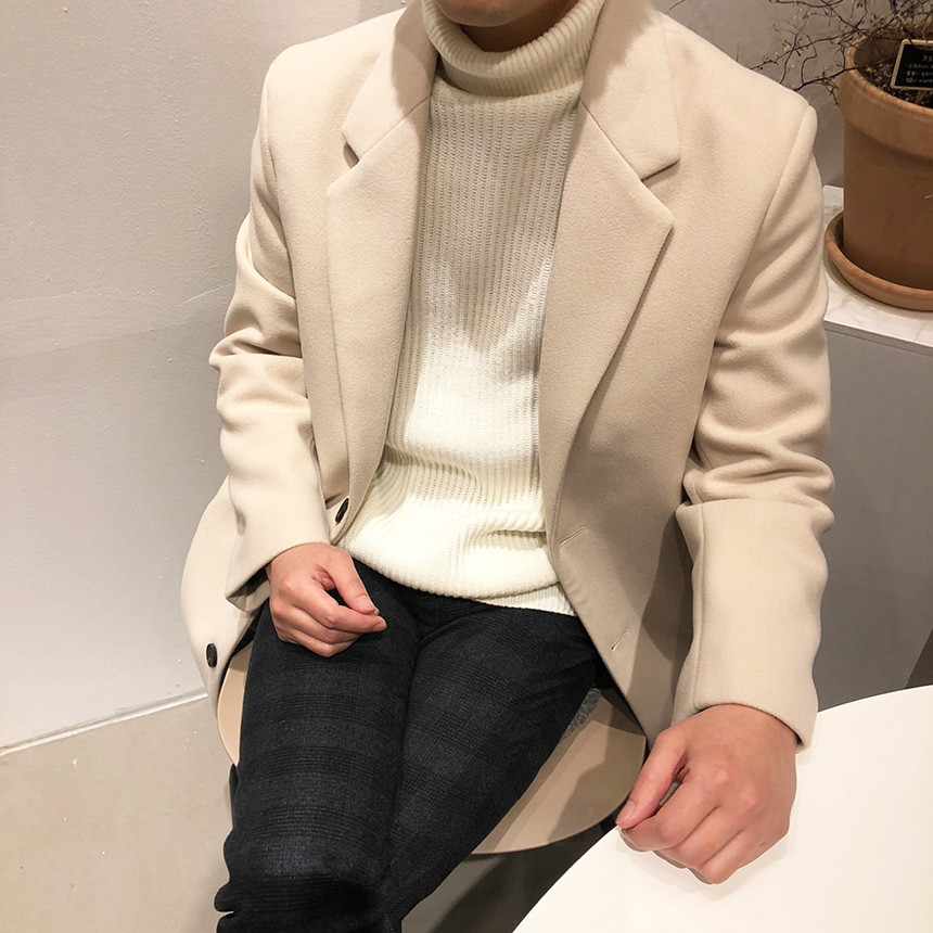 크림베이지 캐시미어 루즈핏 싱글 코트