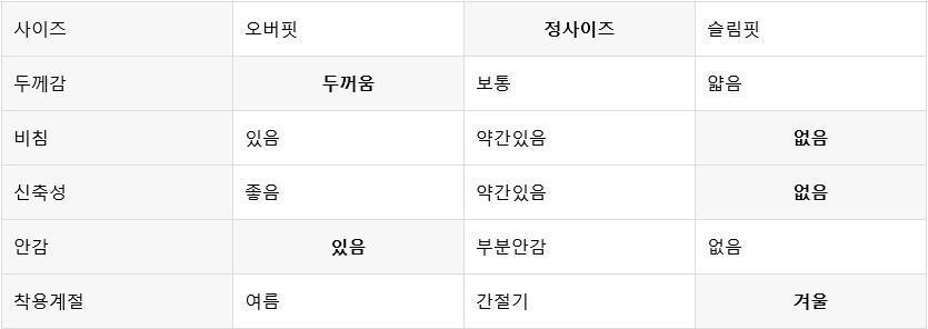 평소 입던 스타일과 달라 만족도가 낮을 수 있습니다