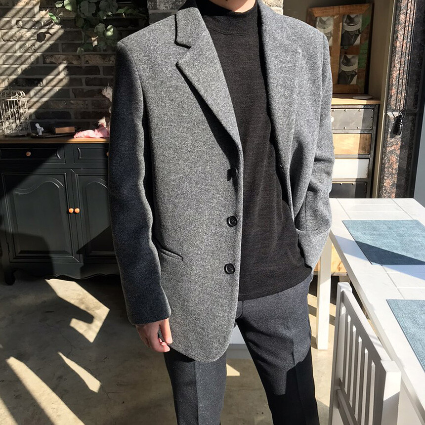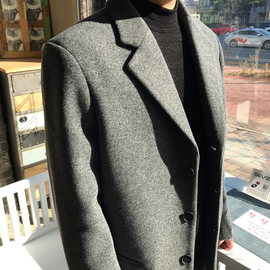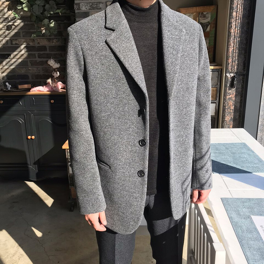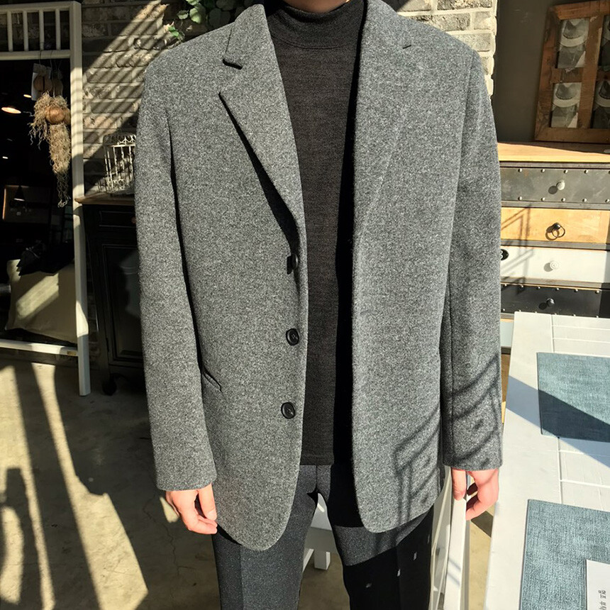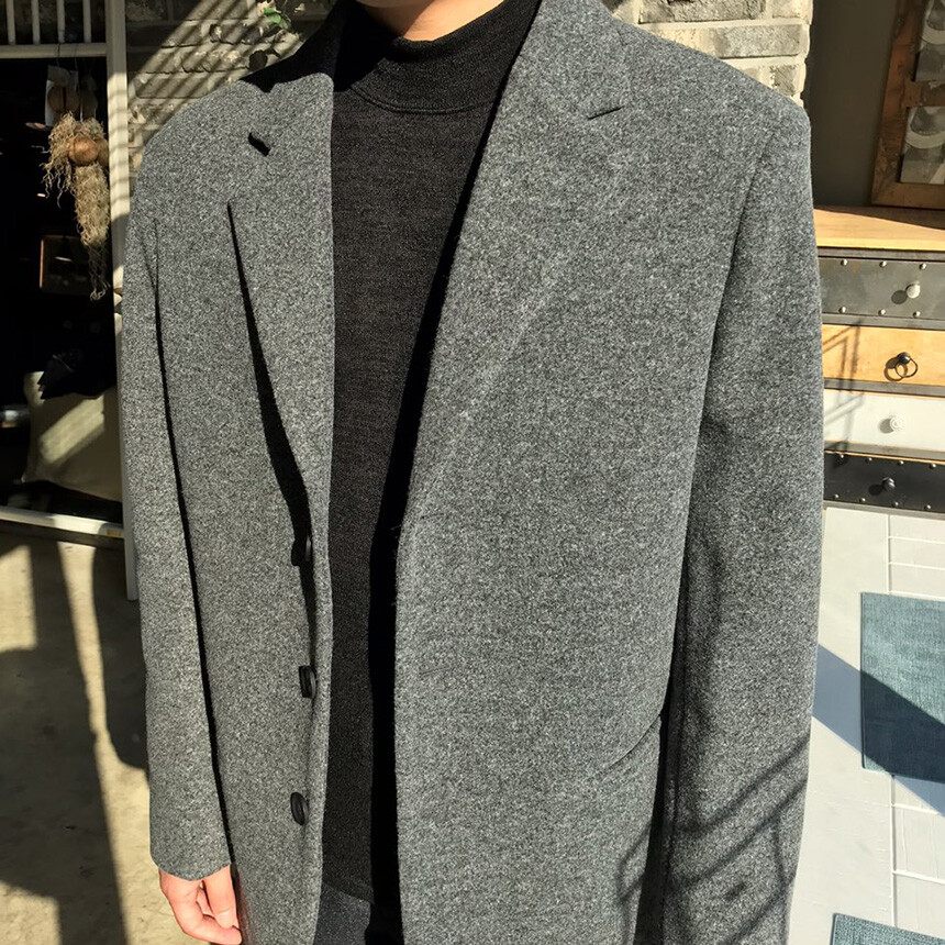 오버핏 보카시 그레이 쓰리버튼 울자켓
