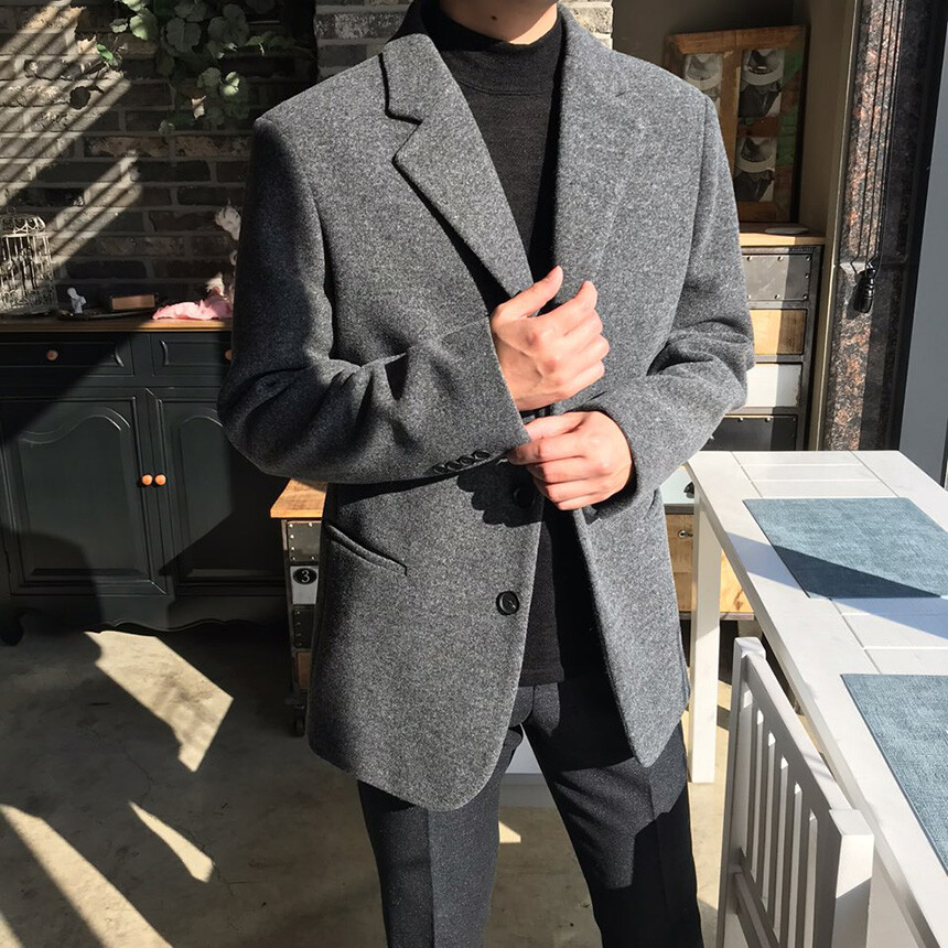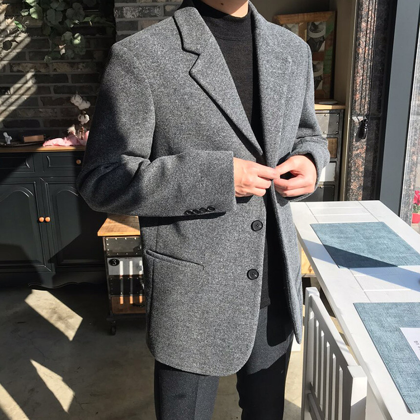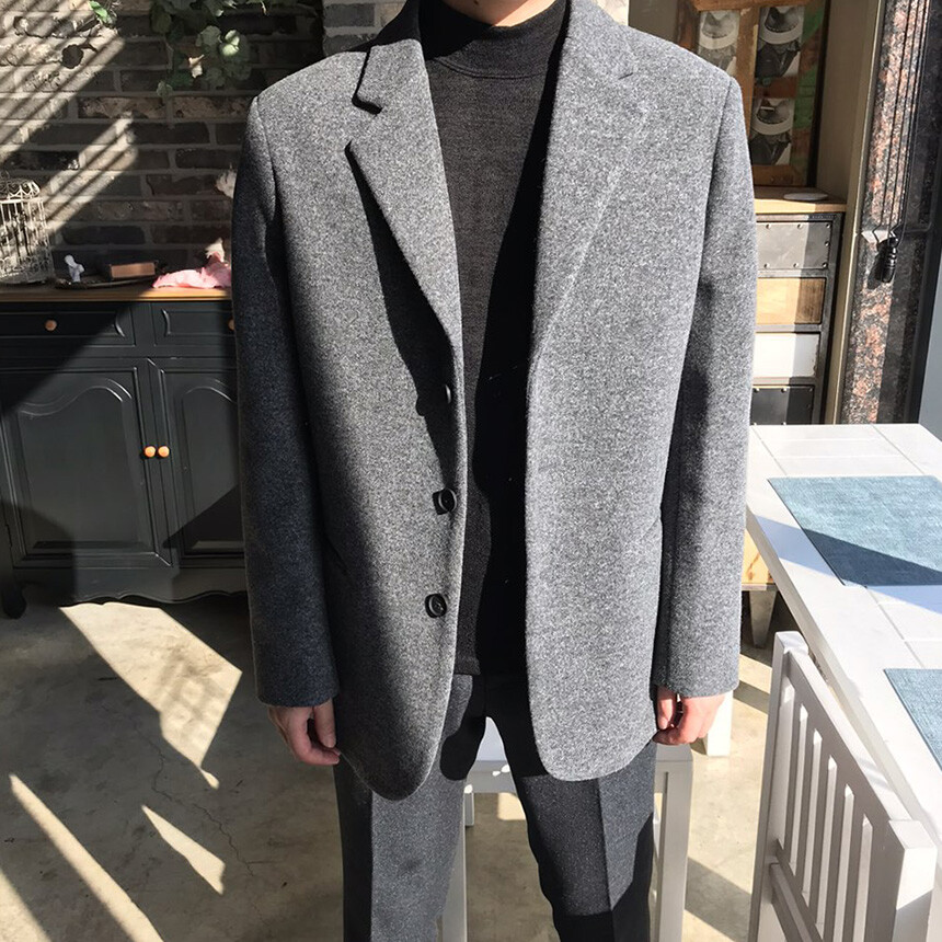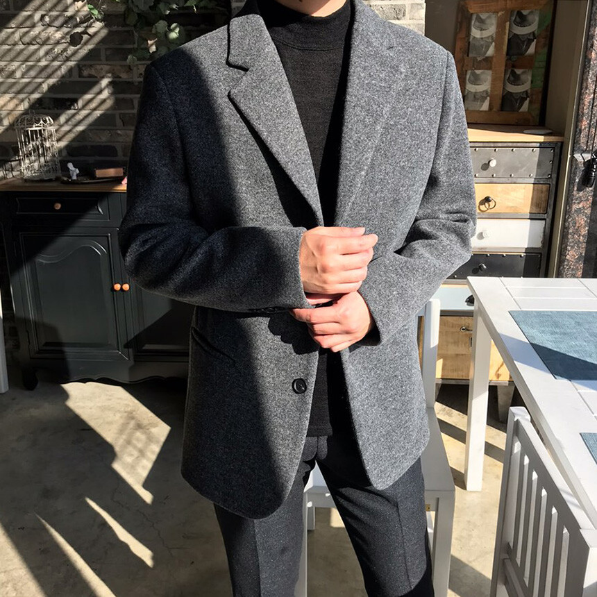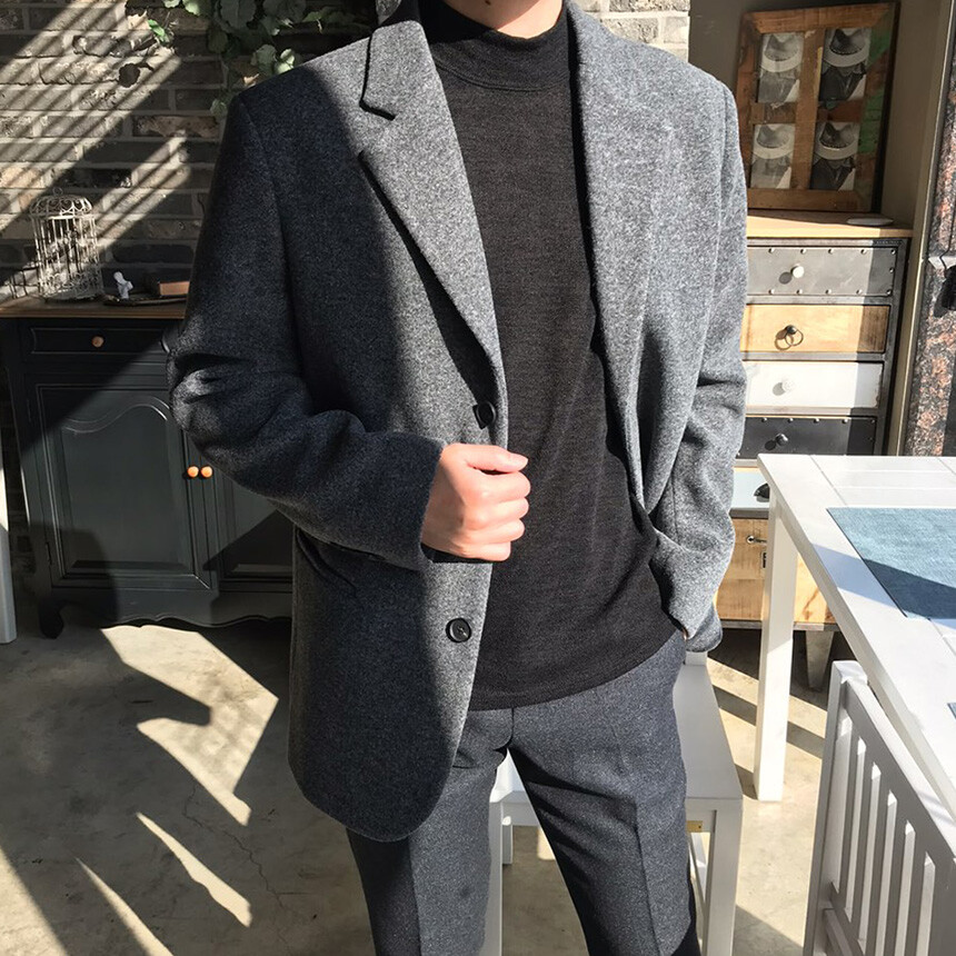 오버핏 보카시 그레이 쓰리버튼 울자켓