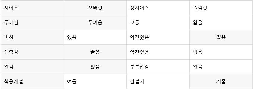 평소 입던 스타일과 달라 만족도가 낮을 수 있습니다