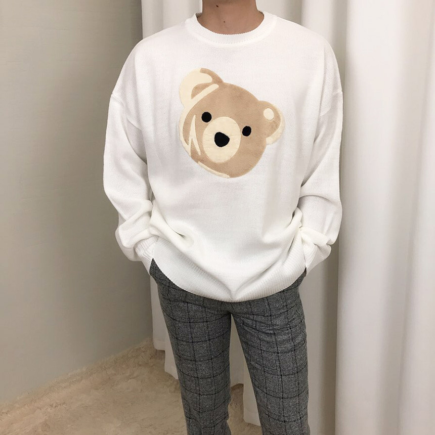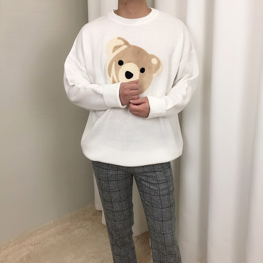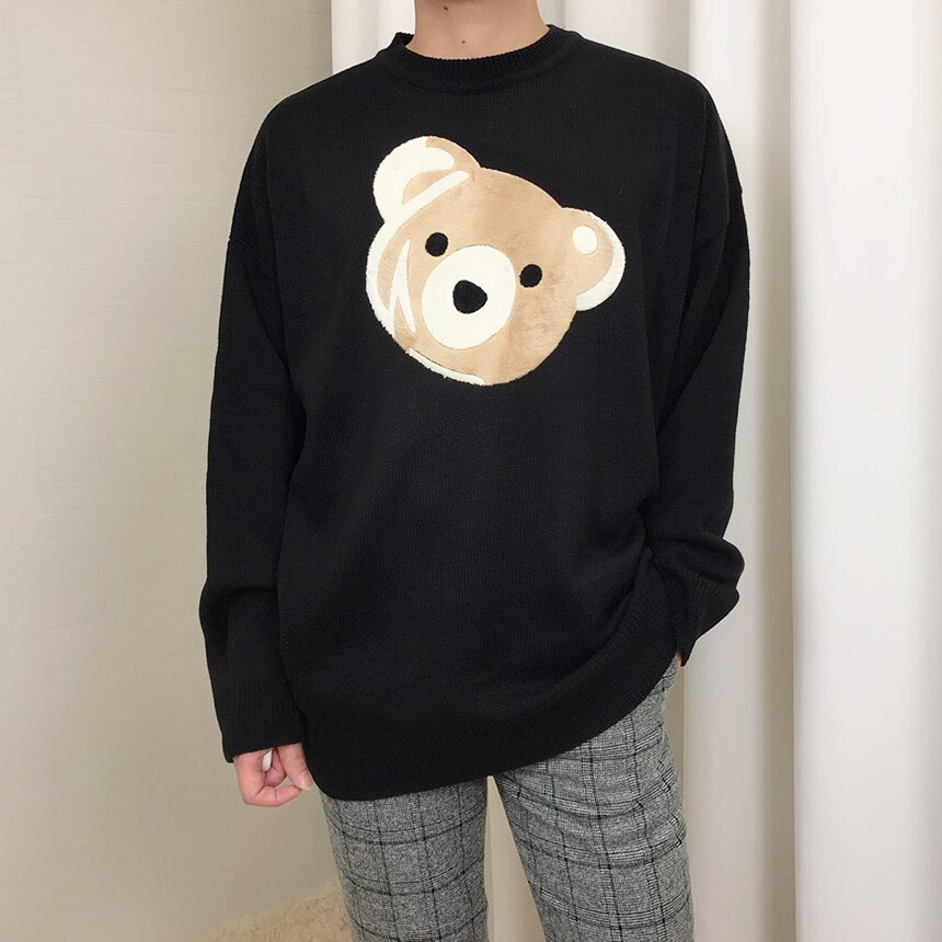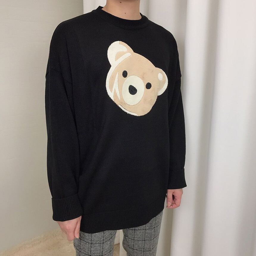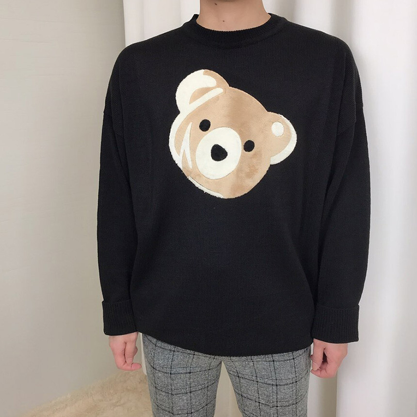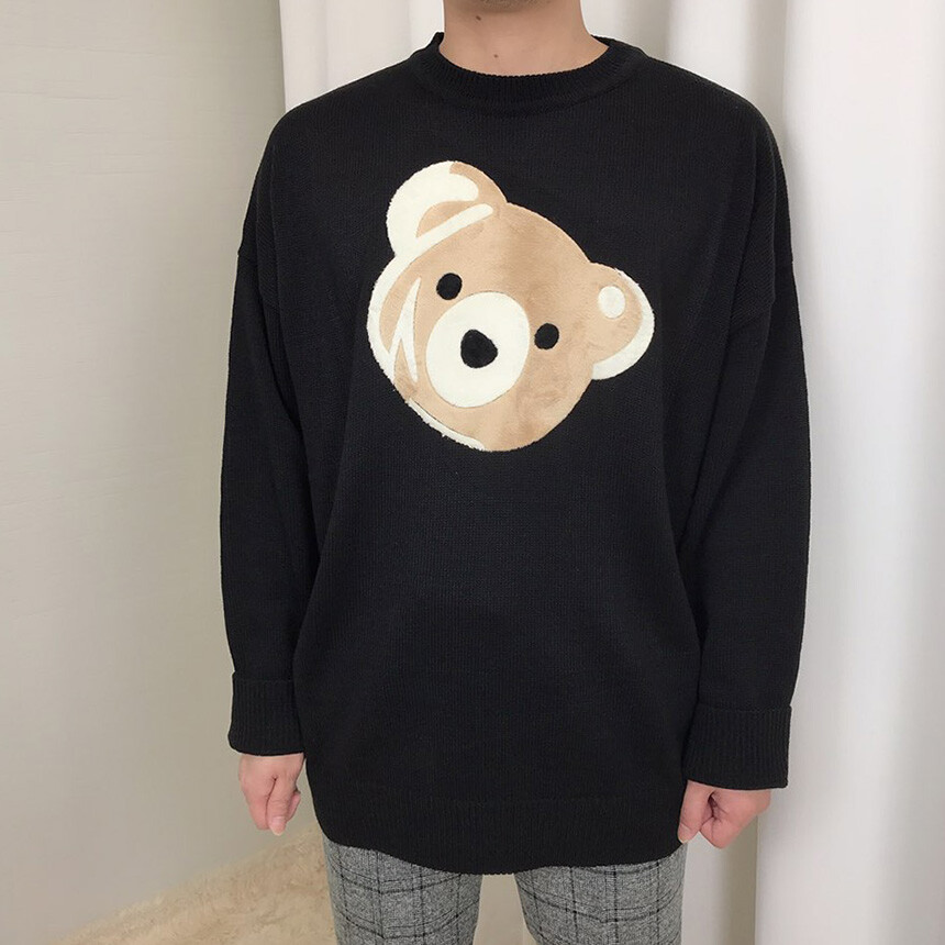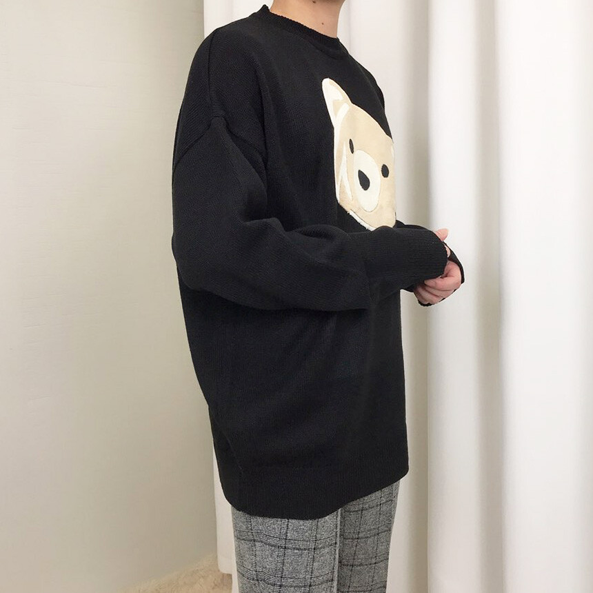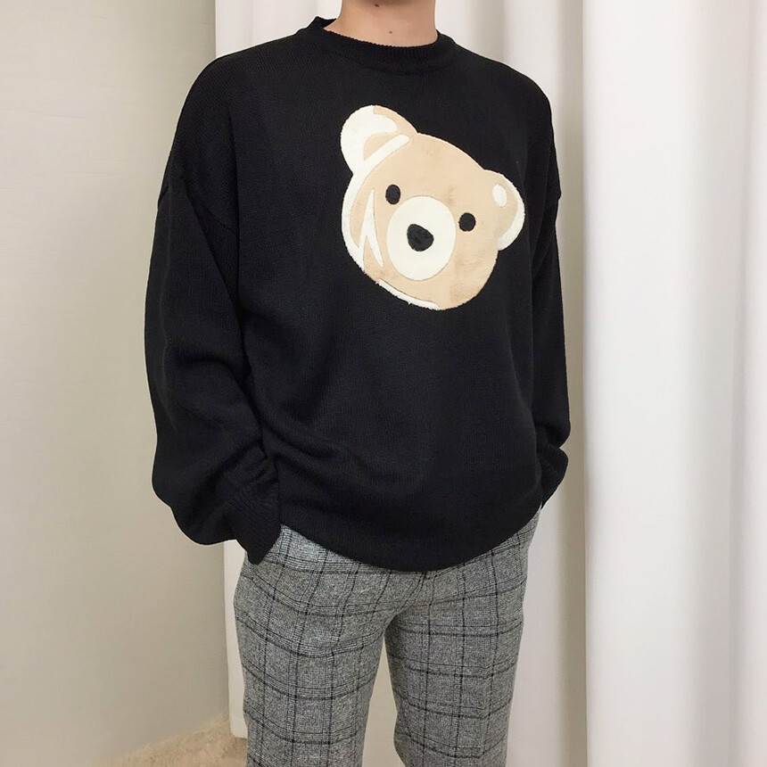 벨벳패치 오버핏 겨울 니트