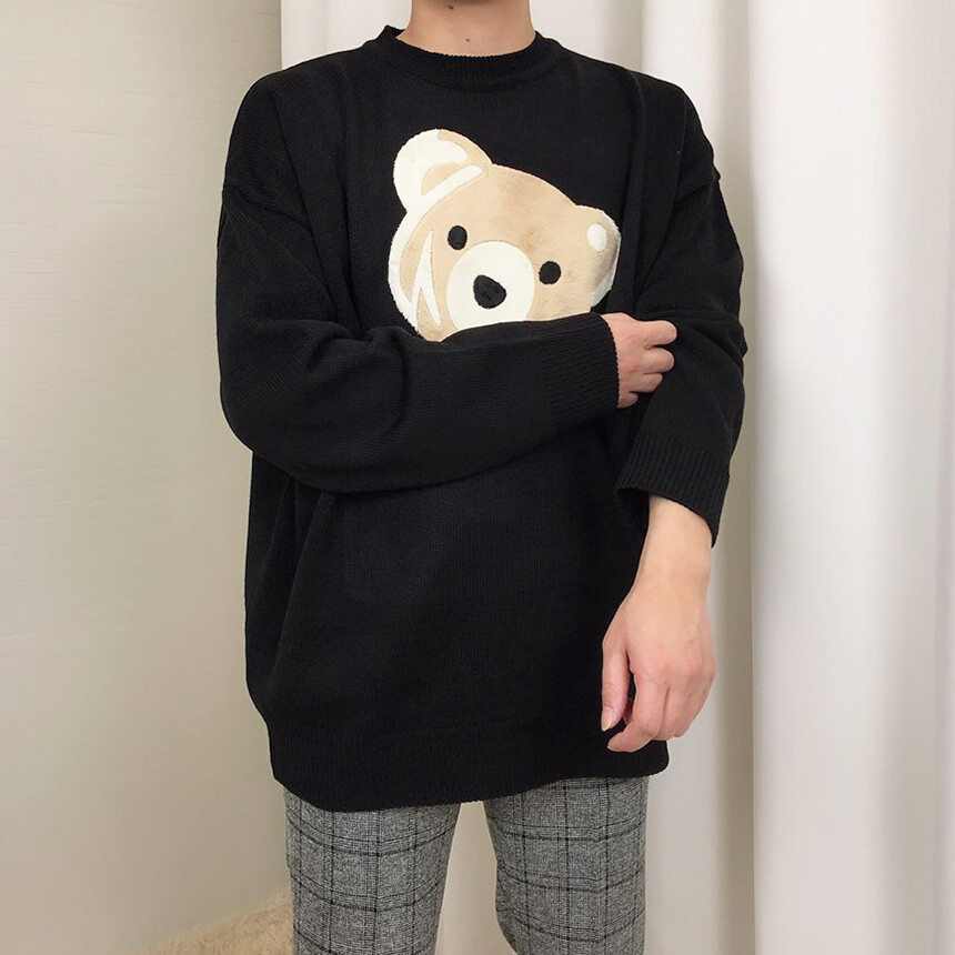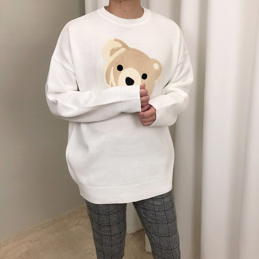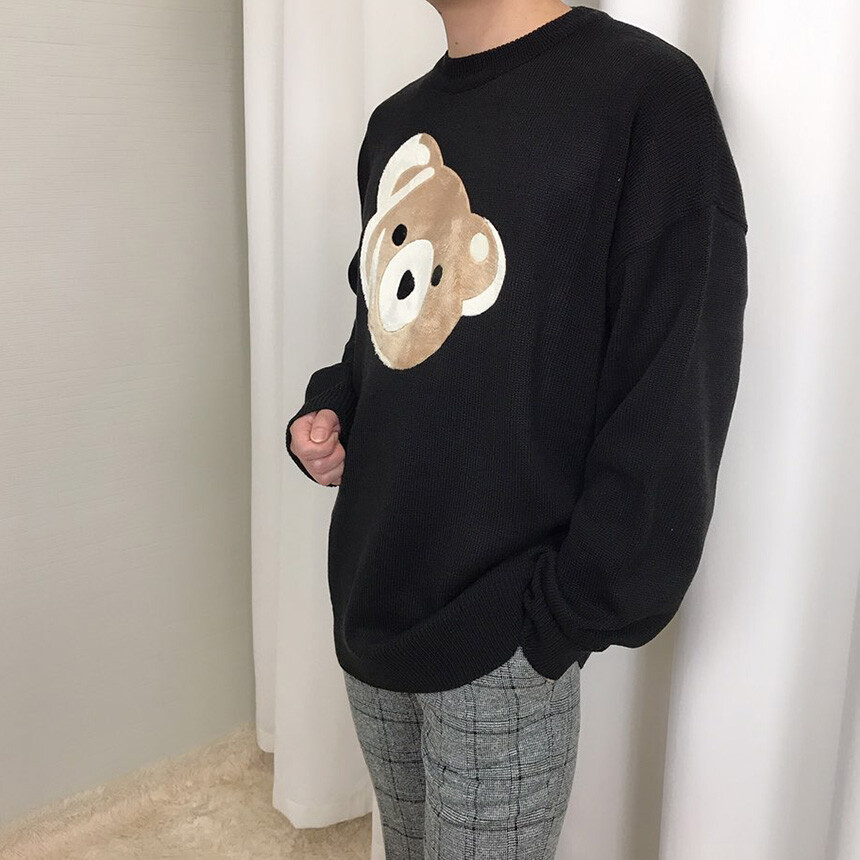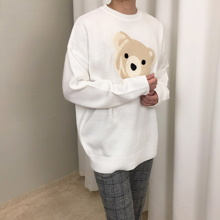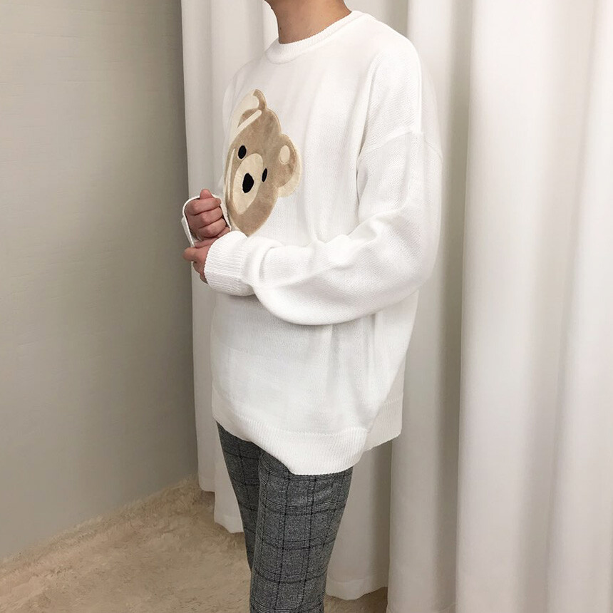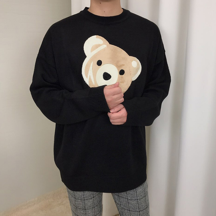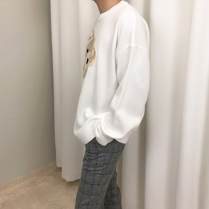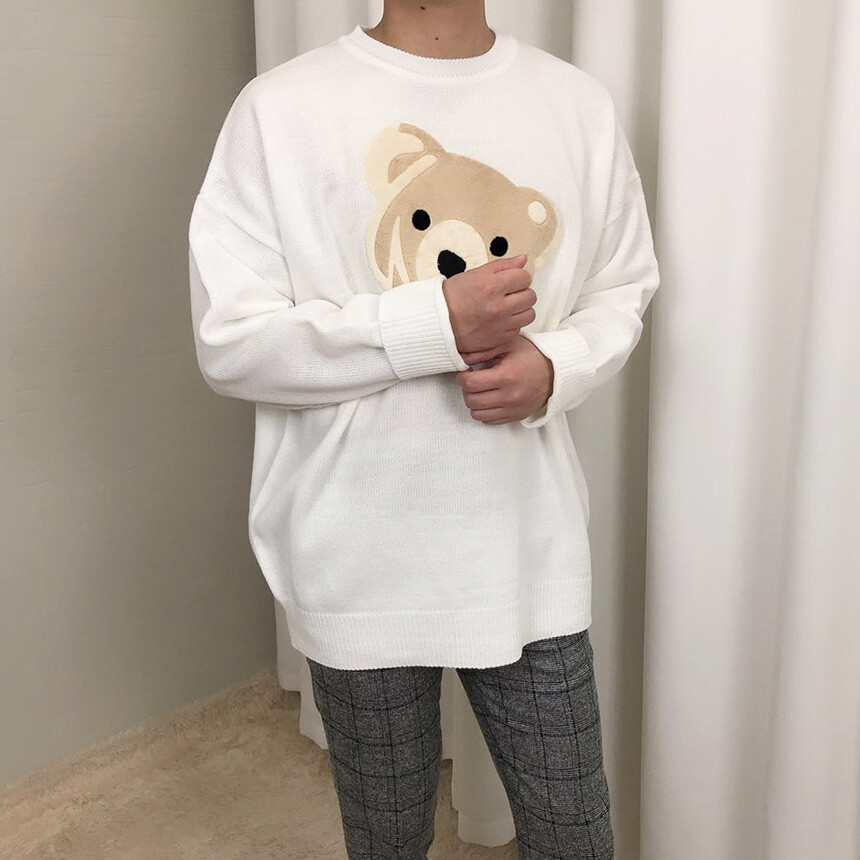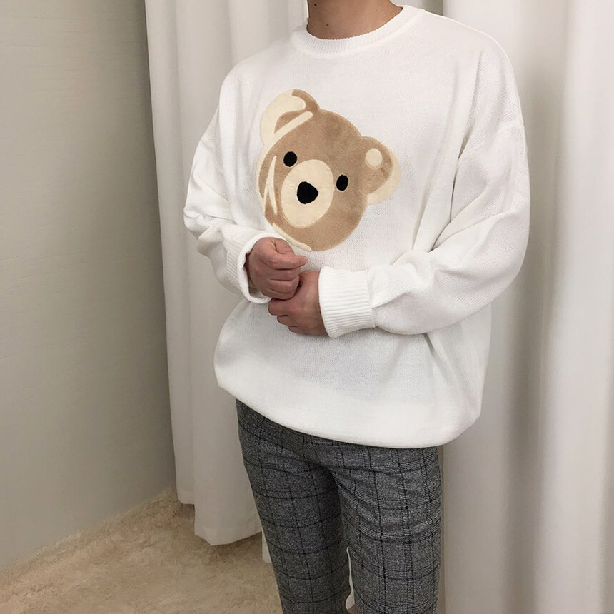 벨벳패치 오버핏 겨울 니트