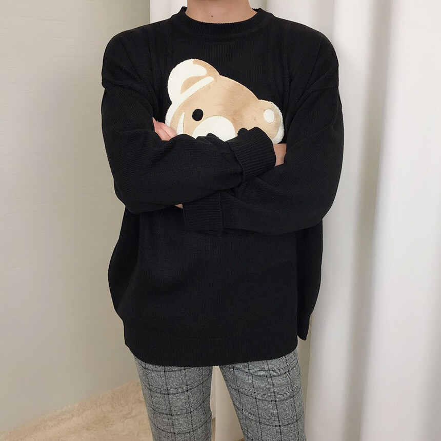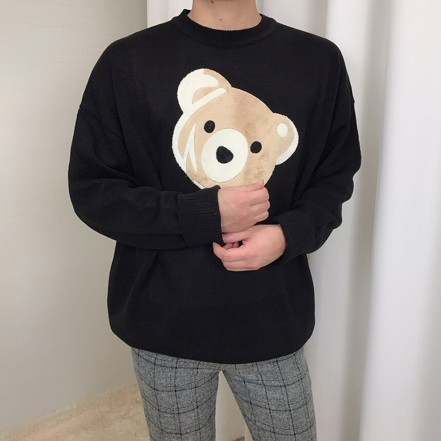 [BXATLAW1336] 벨벳패치 오버핏 겨울 니트(2col)
