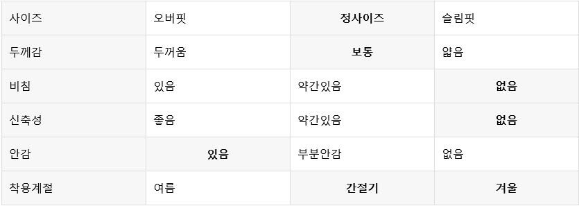 평소 입던 스타일과 달라 만족도가 낮을 수 있습니다