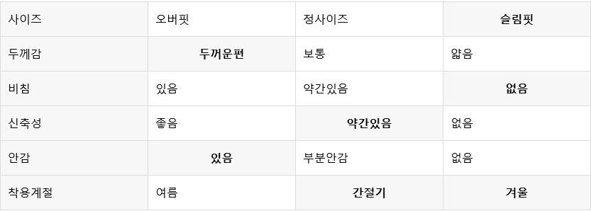 평소 입던 스타일과 달라 만족도가 낮을 수 있습니다