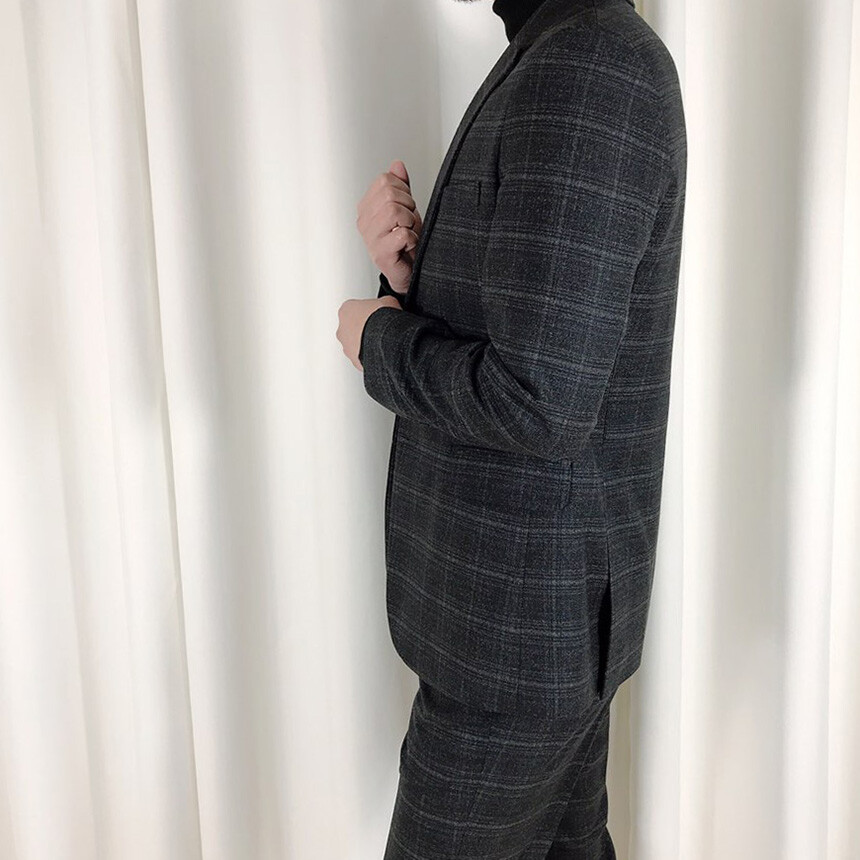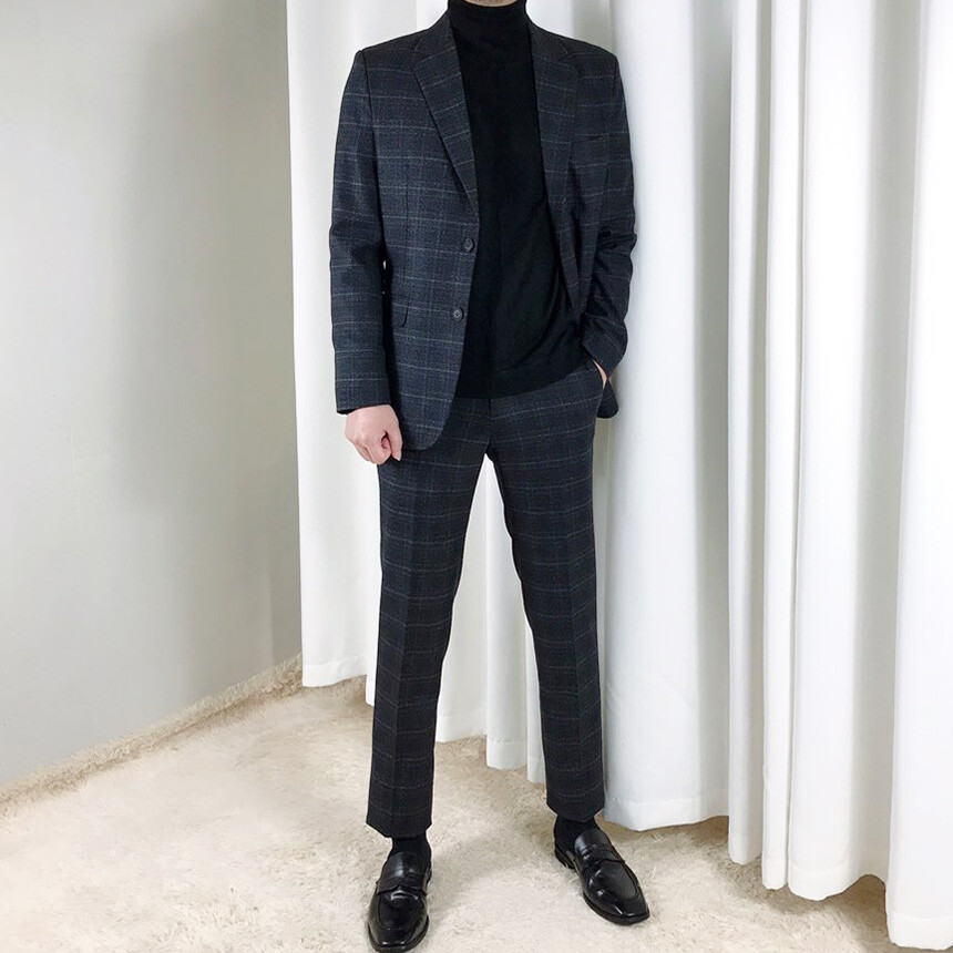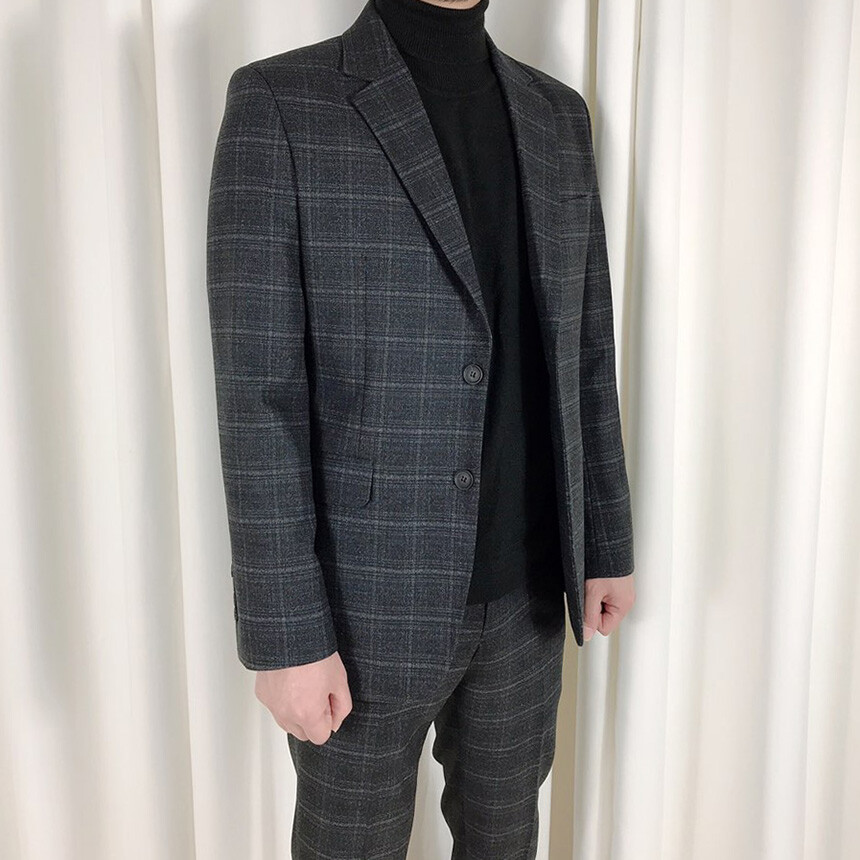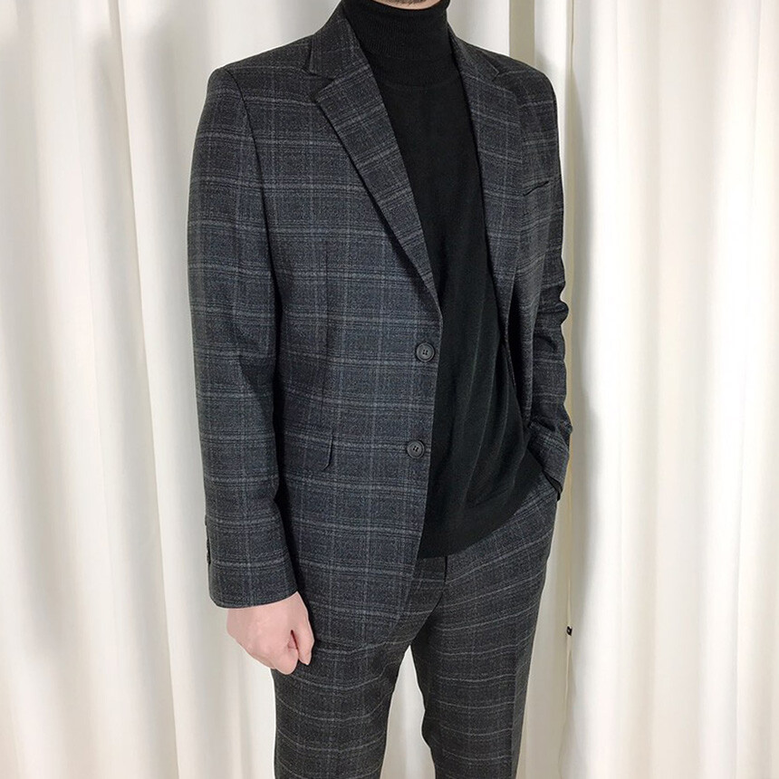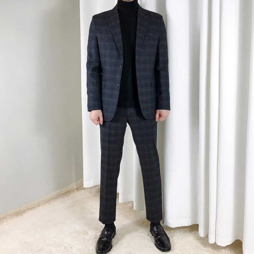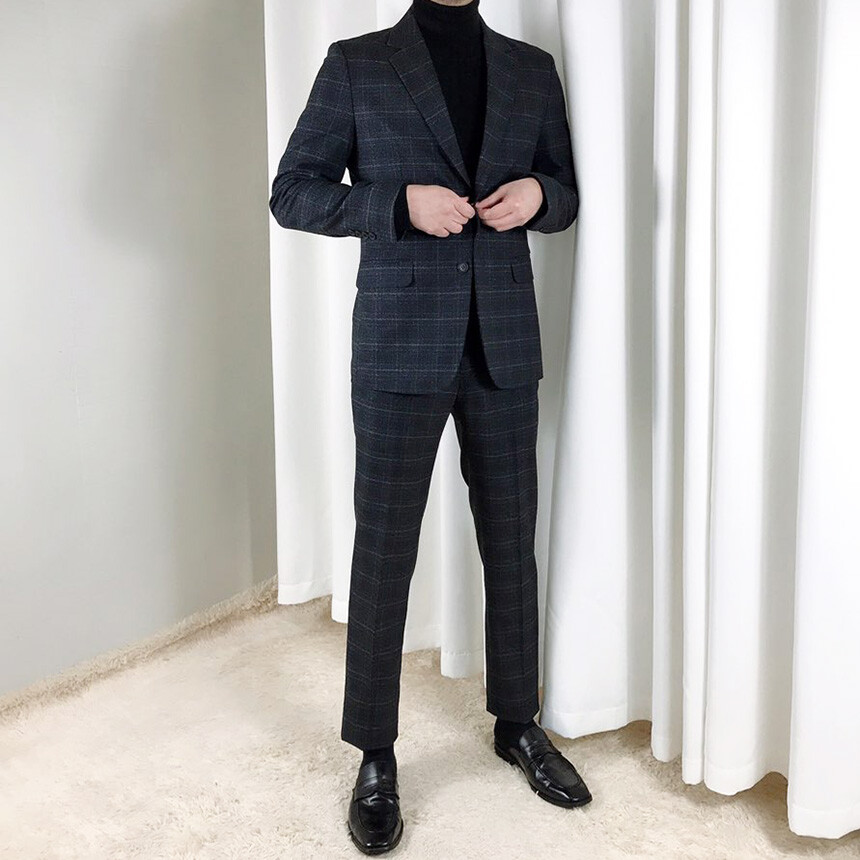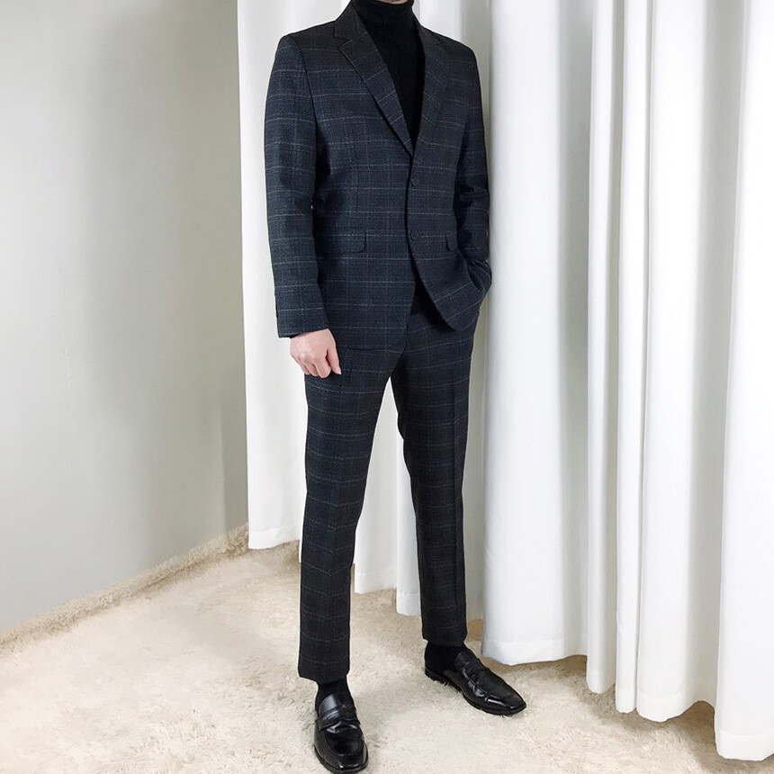 블랙 글렌 체크 슬림 셋업 수트 [BXAFLBS1152]