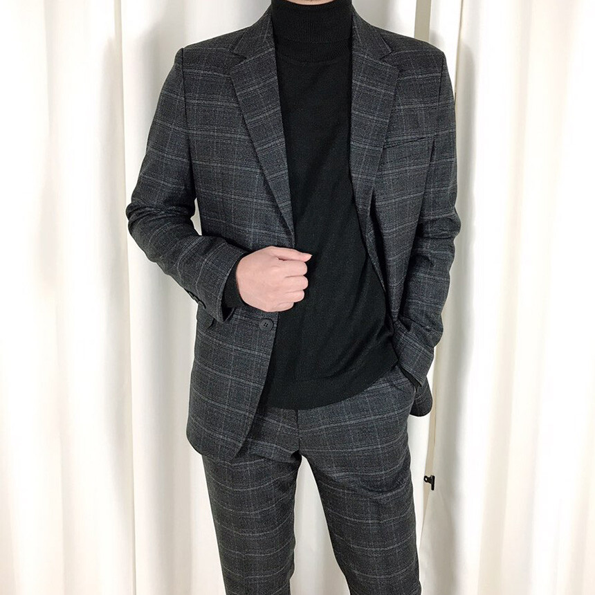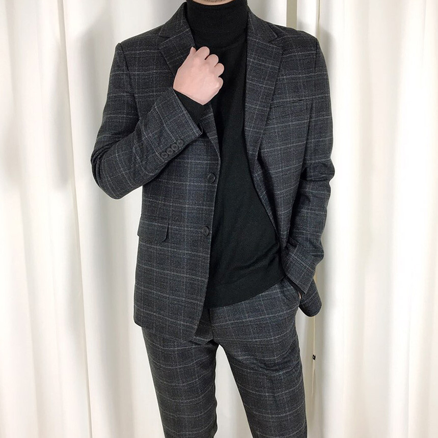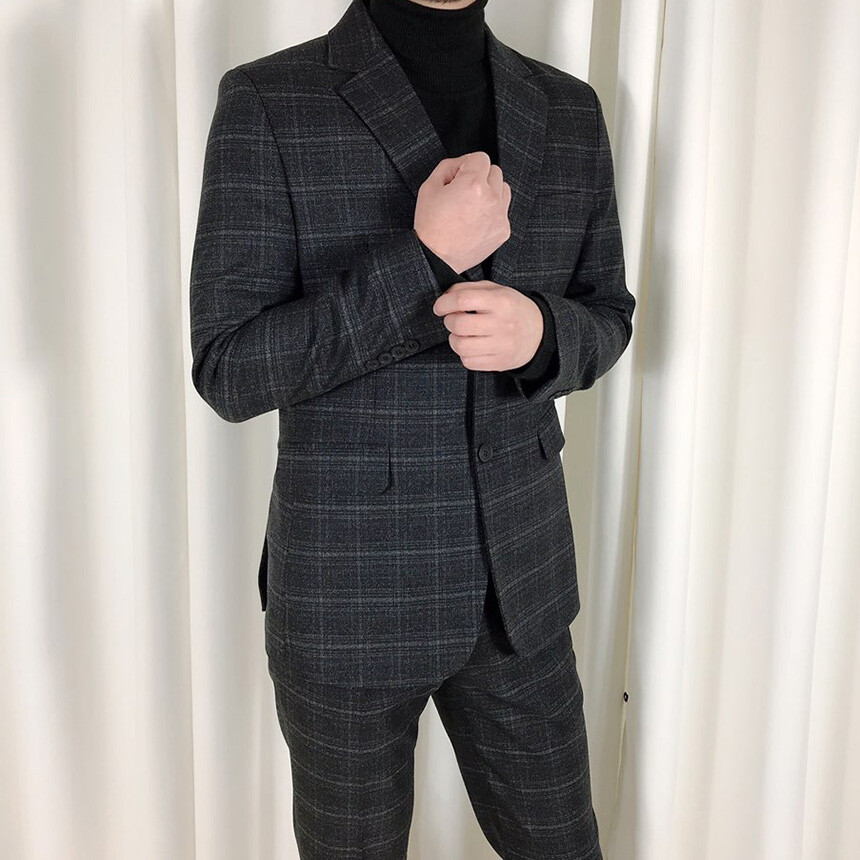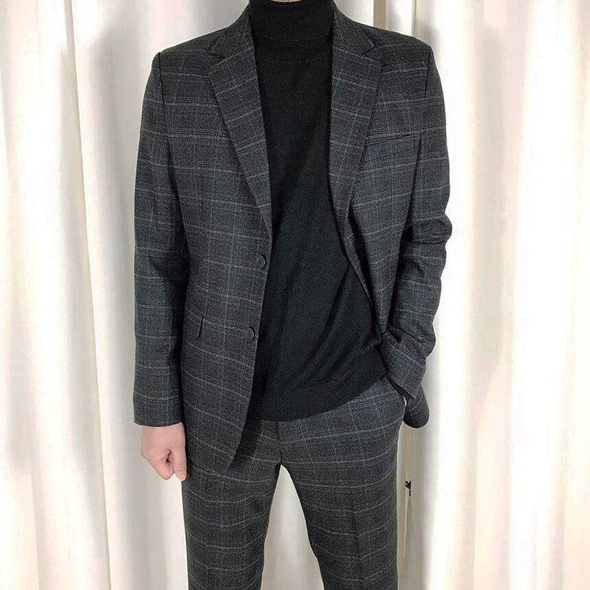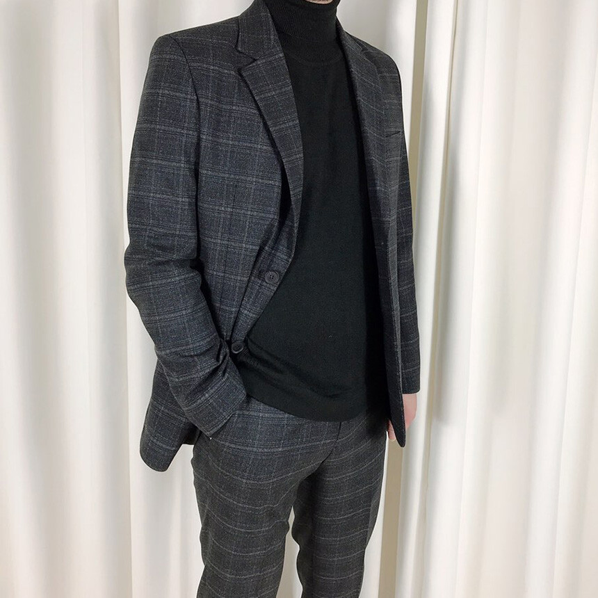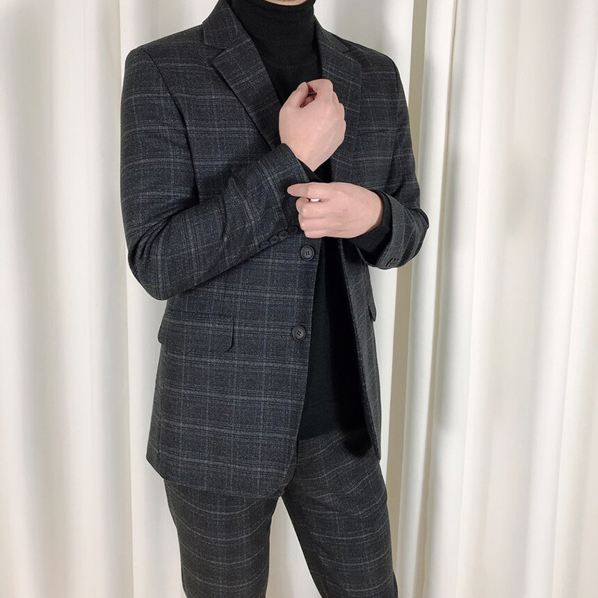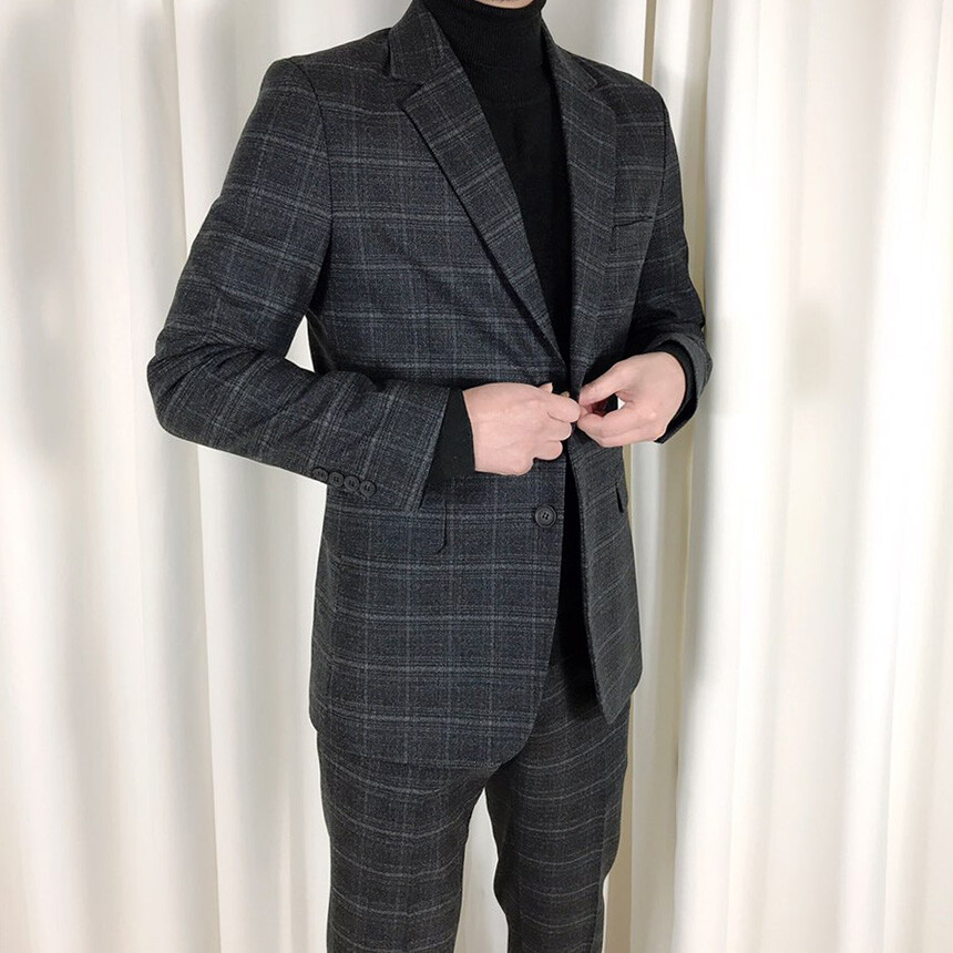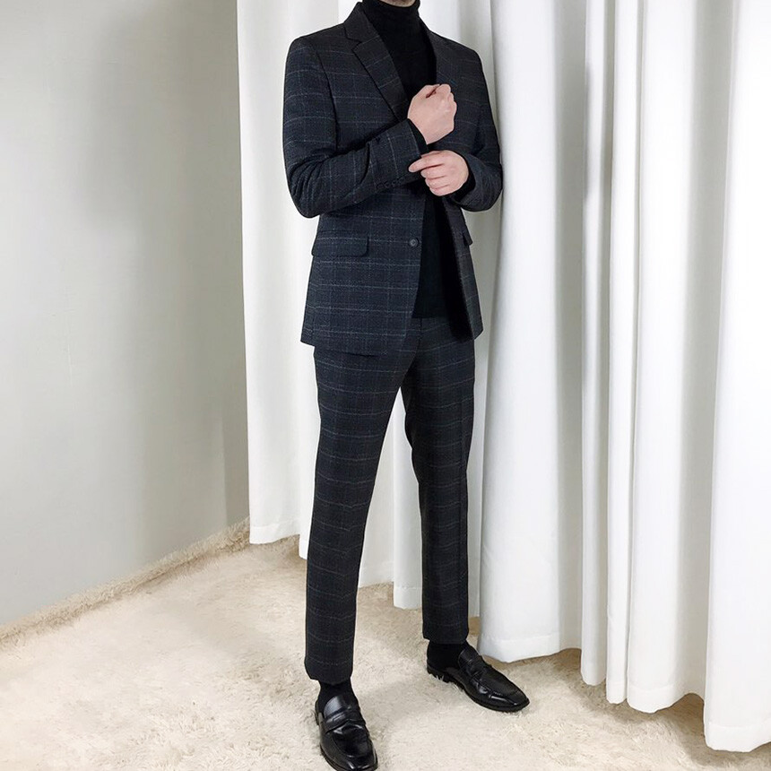 블랙 글렌 체크 슬림 셋업 수트 [BXAFLBS1152]