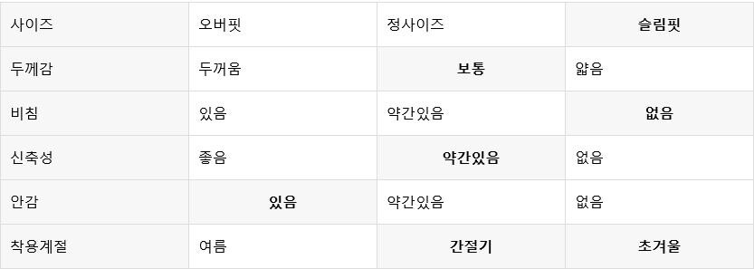평소 입던 스타일과 달라 만족도가 낮을 수 있습니다