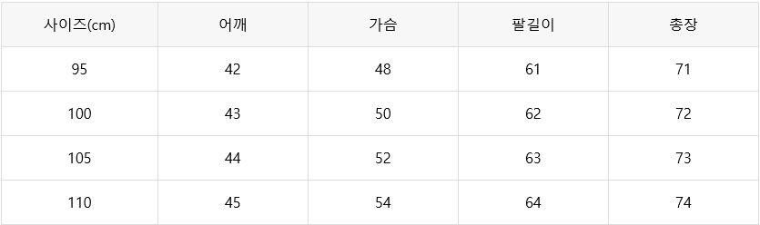 예시)본인사이즈100이면 100-105사이즈 구매 권장