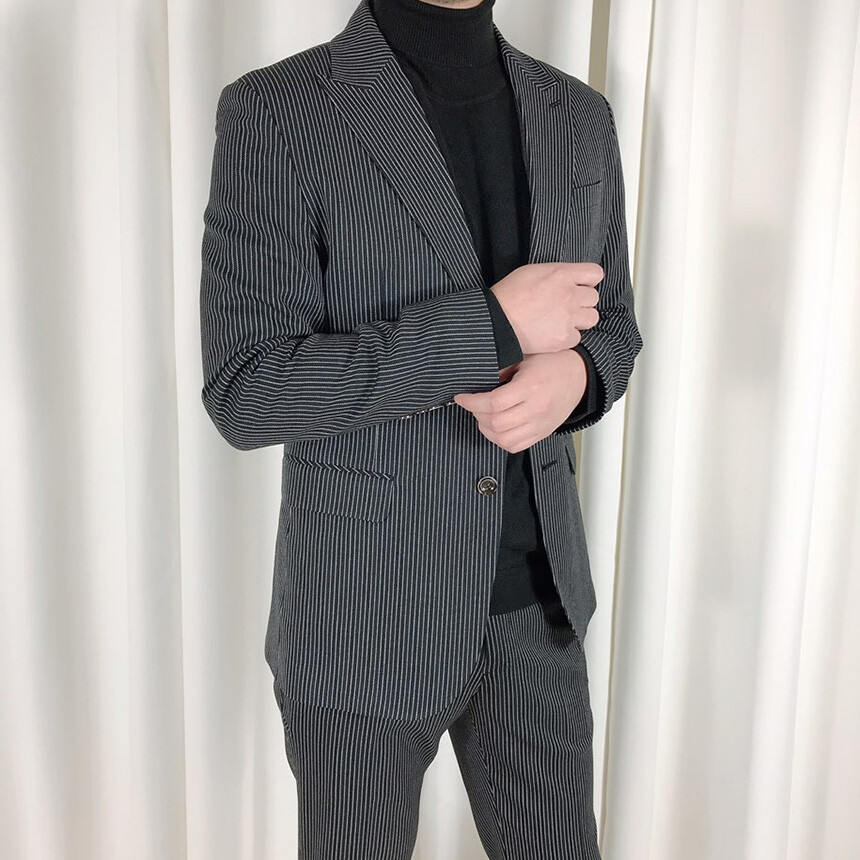 스트라이프 스판 블랙 블레이져 [BXAFLBS1551]