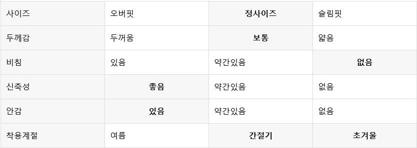 평소 입던 스타일과 달라 만족도가 낮을 수 있습니다