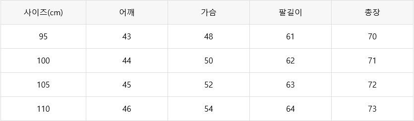 예시)본인사이즈100이면 100-105사이즈 구매 권장