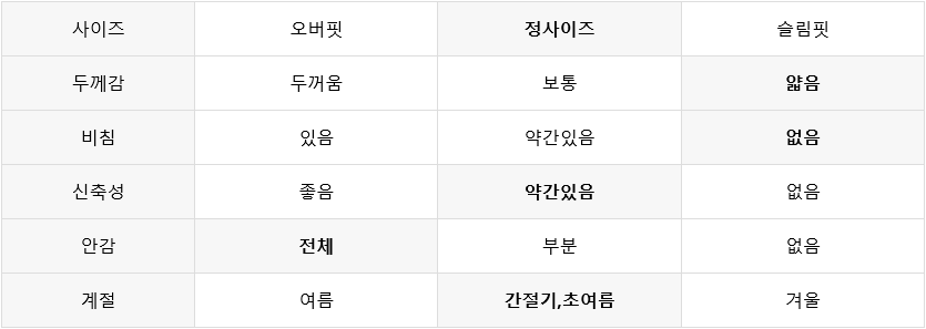 평소 입던 스타일과 달라 만족도가 낮을 수 있습니다