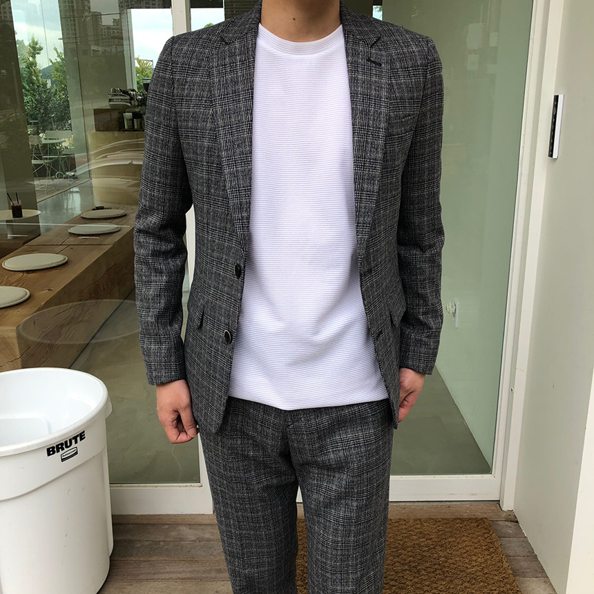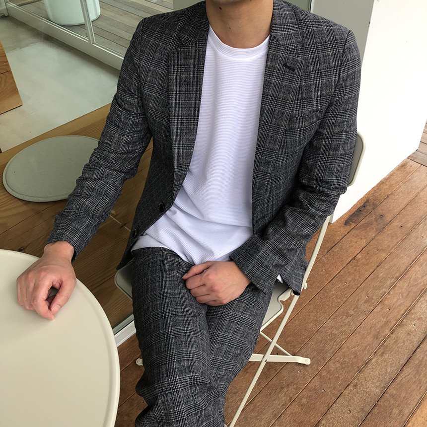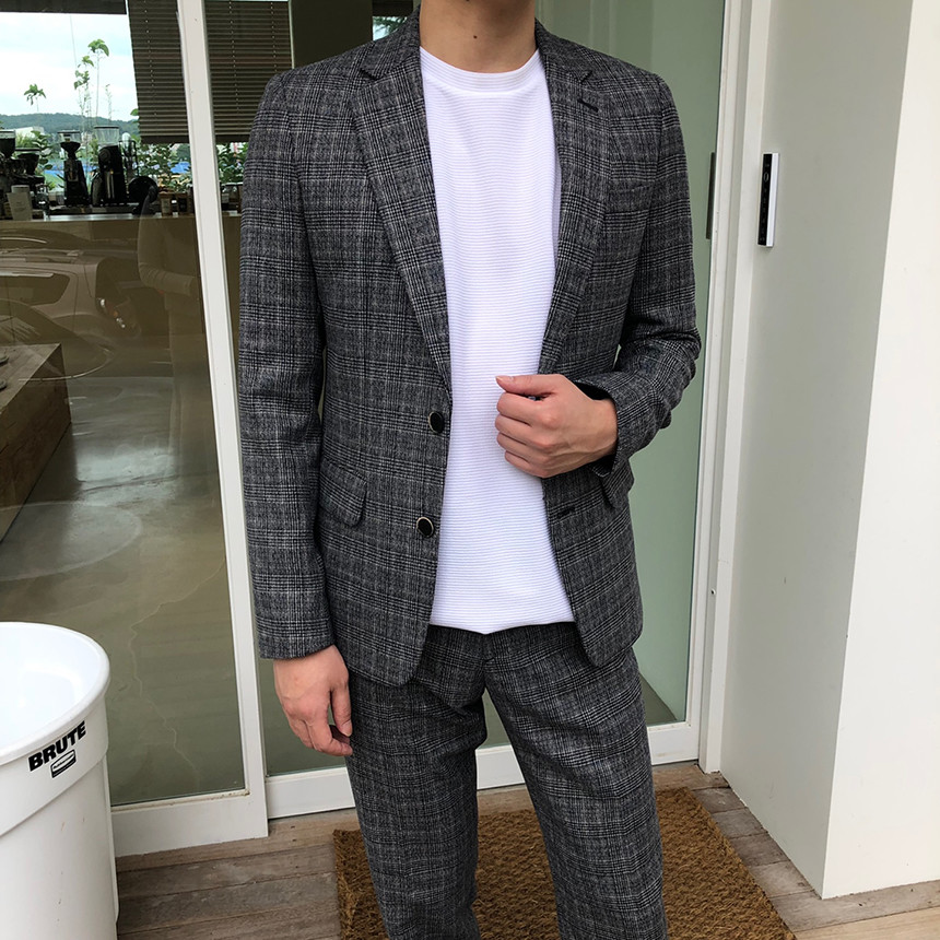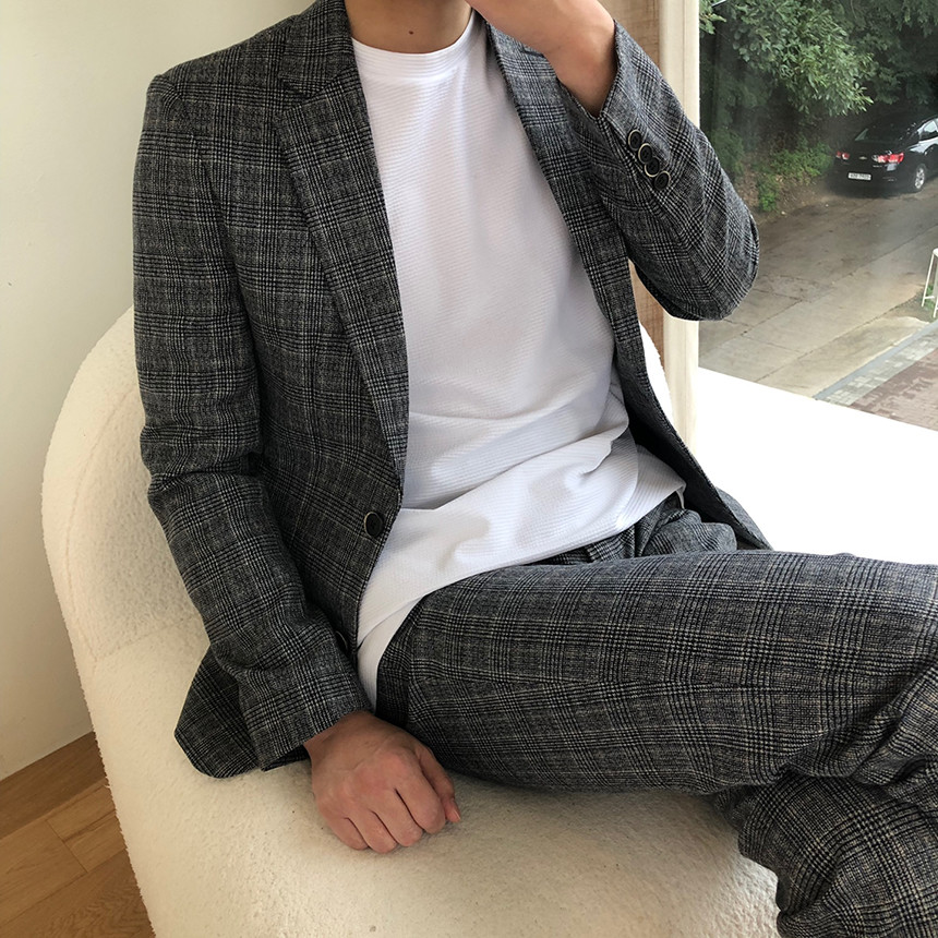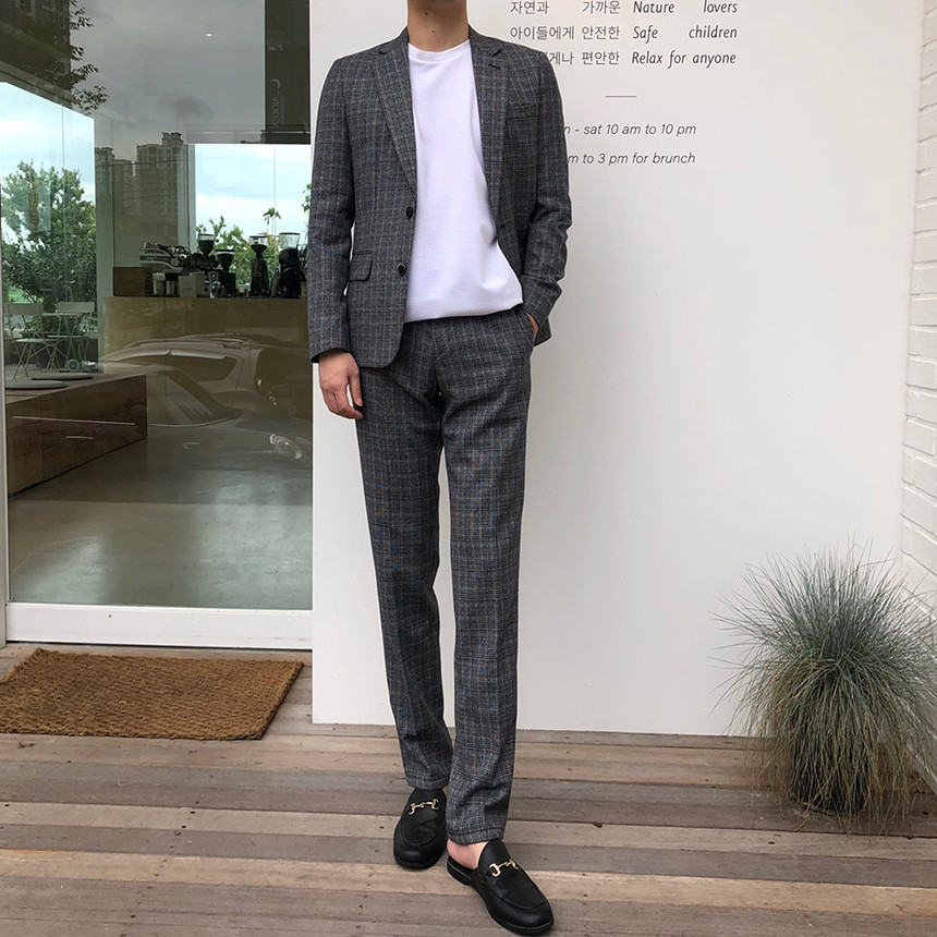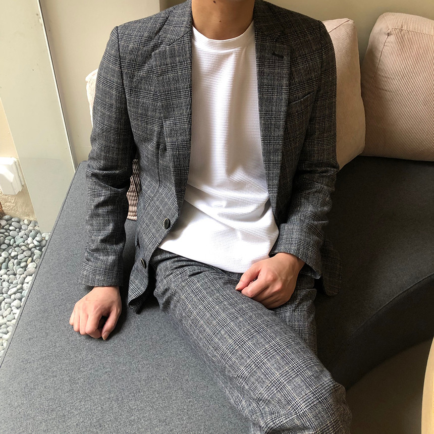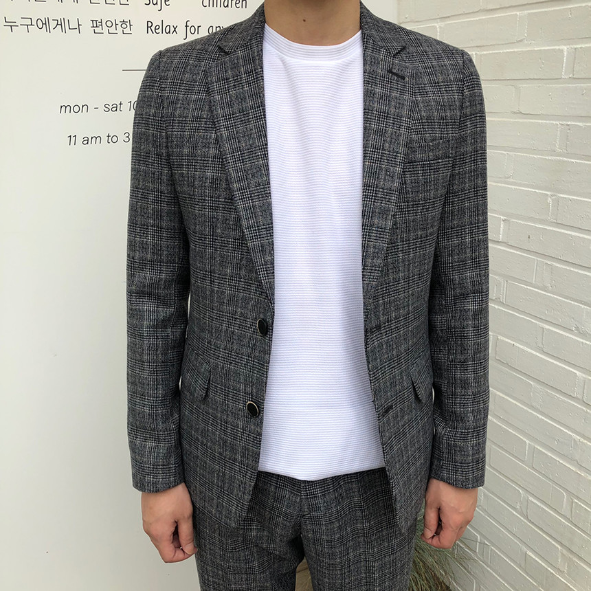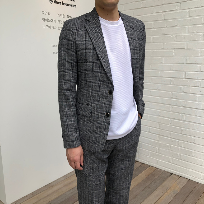 가을에서부터 겨울까지 입을 수 있는 슬림한 셋업으로