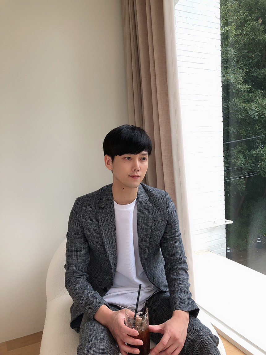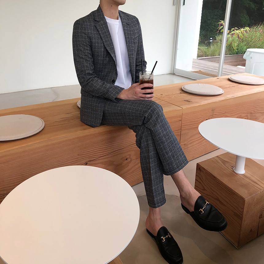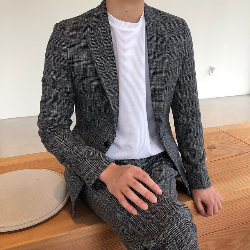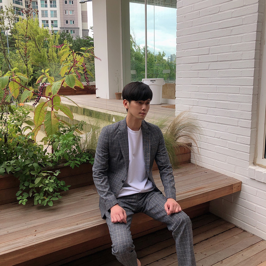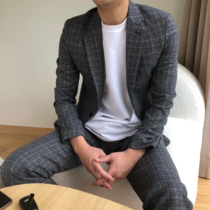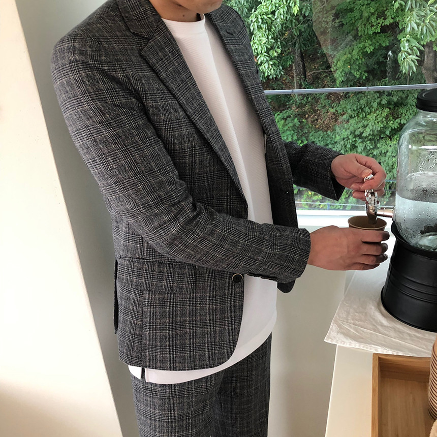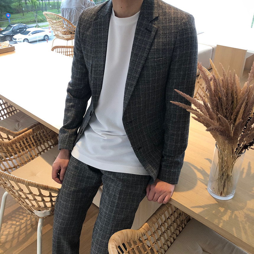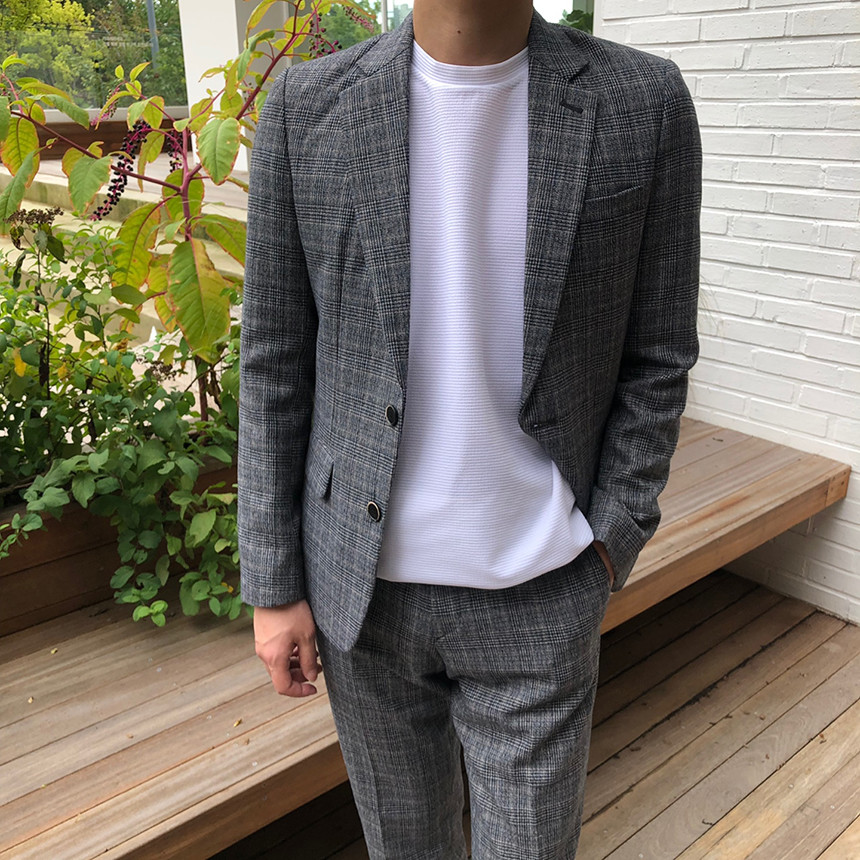 가을에서부터 겨울까지 입을 수 있는 슬림한 셋업으로