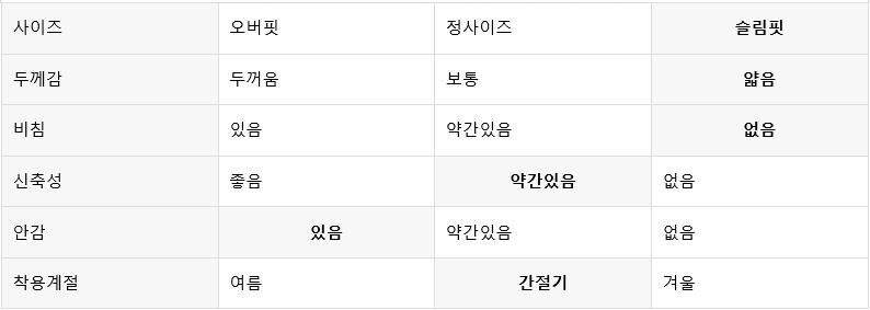 평소 입던 스타일과 달라 만족도가 낮을 수 있습니다