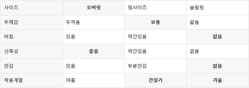 평소 입던 스타일과 달라 만족도가 낮을 수 있습니다