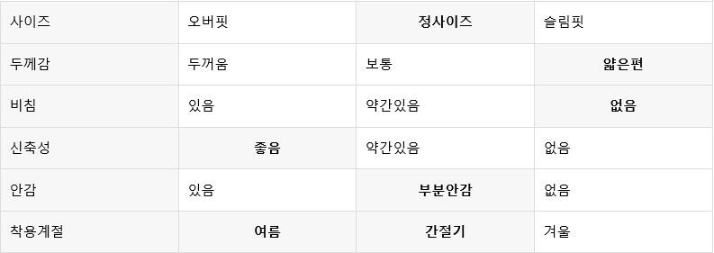 평소 입던 스타일과 달라 만족도가 낮을 수 있습니다