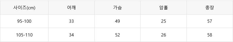 예시)본인사이즈100이면 100-105사이즈 구매 권장
