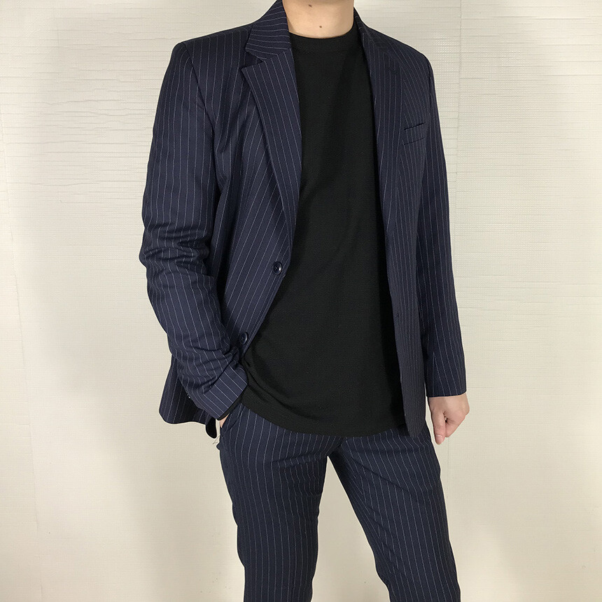 네이비 스트라이프 간절기 자켓