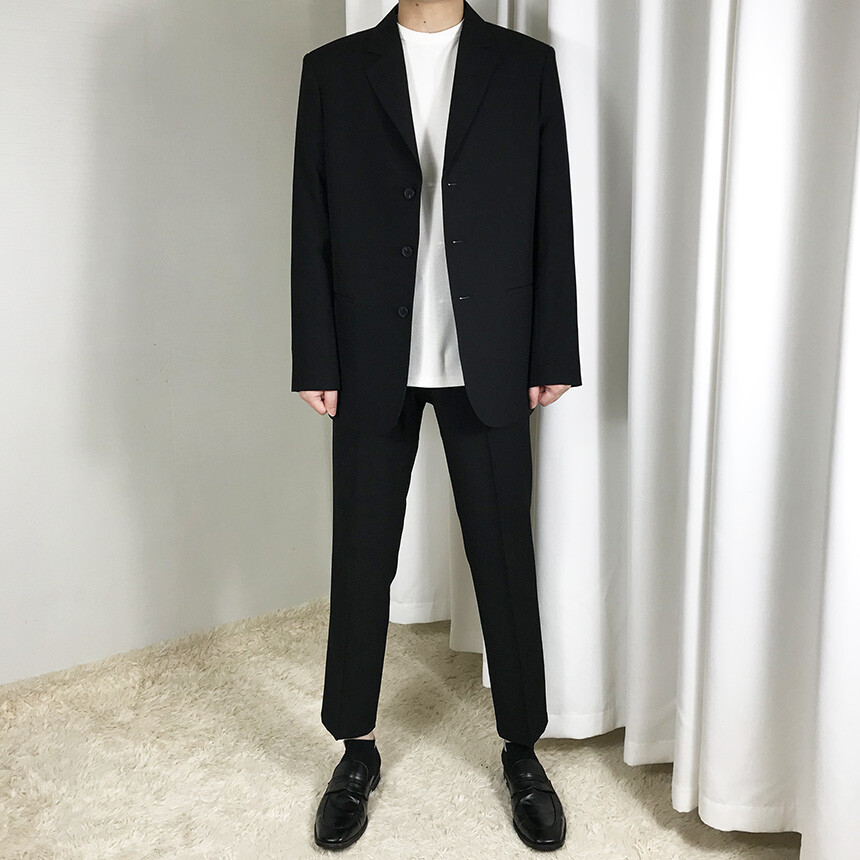 블랙 오버핏 쓰리버튼 수트 [BXAFLBS1570]