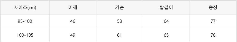 예시)본인사이즈100이면 100-105사이즈 구매 권장