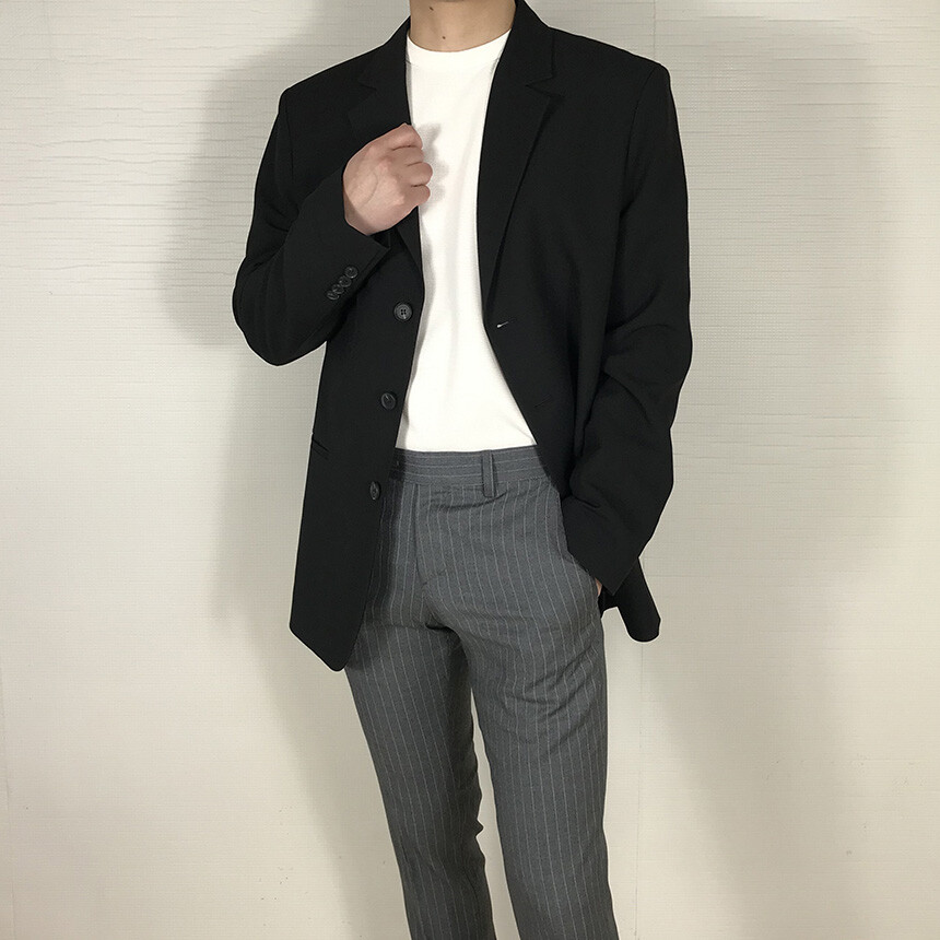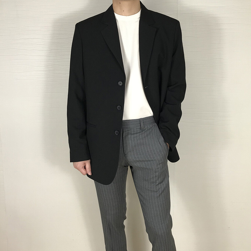 블랙 오버핏 쓰리버튼 자켓 [BXAFLBS1570]
