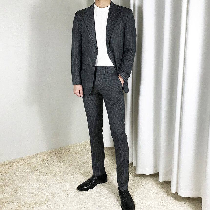 그레이 스트라이프 싱글 자켓 [BXAFLBS1572]