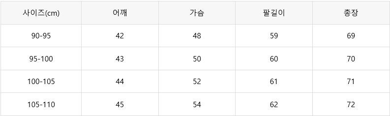 예시)본인사이즈100이면 100-105사이즈 구매 권장