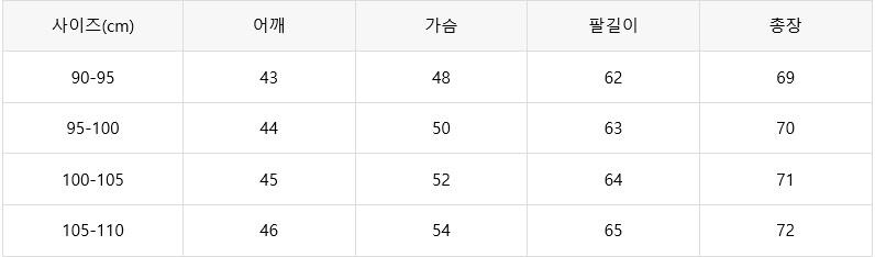 예시)본인사이즈100이면 100-105사이즈 구매 권장