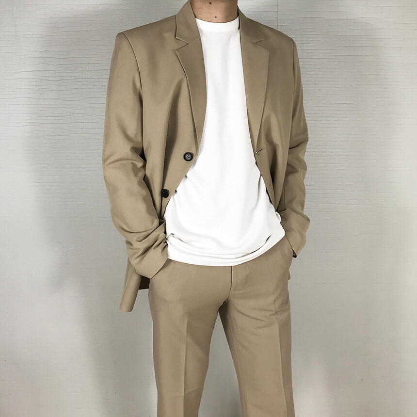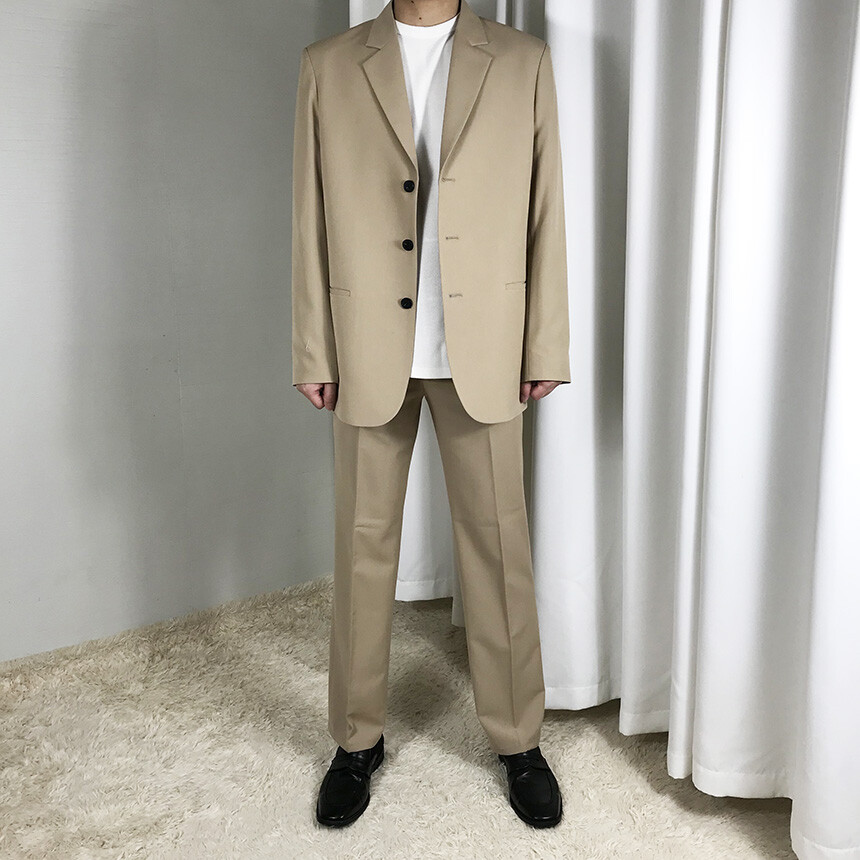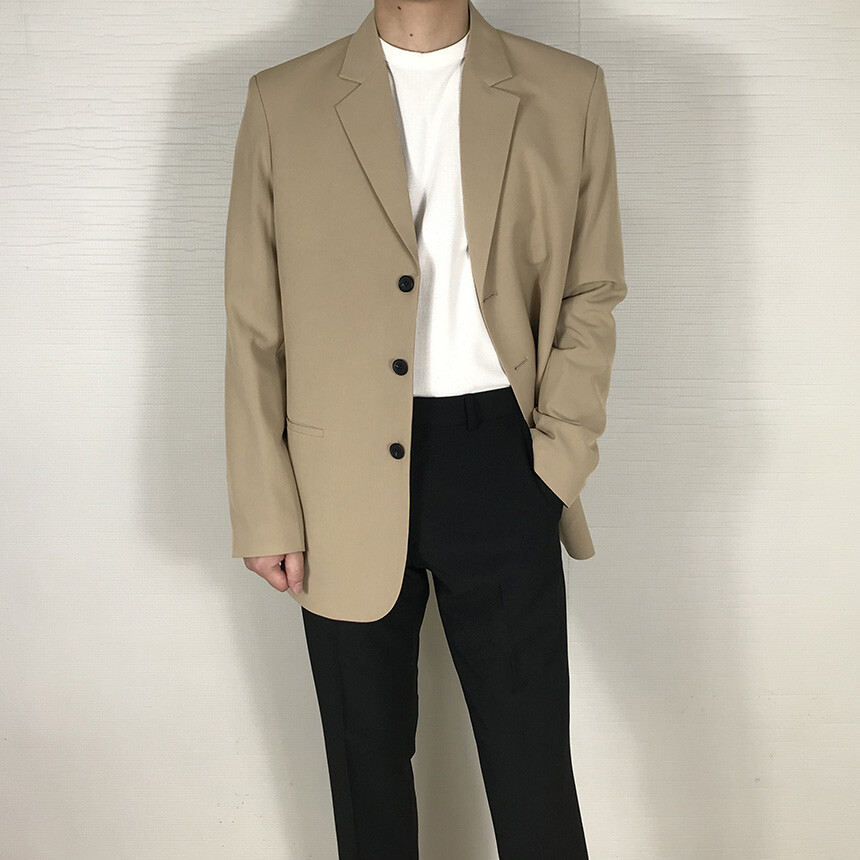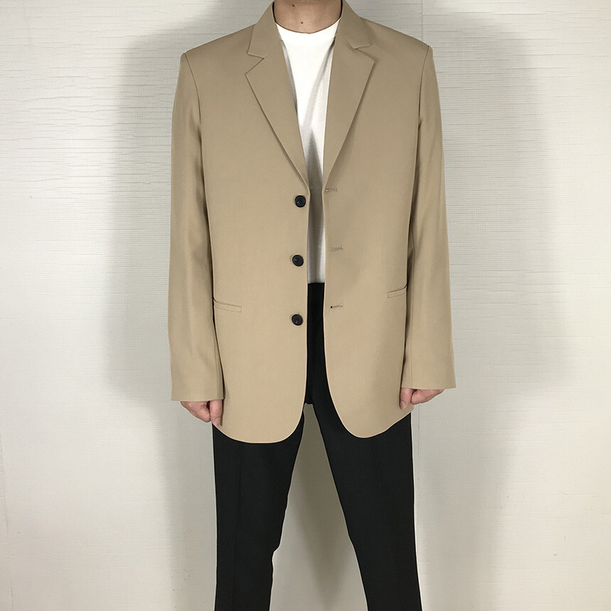 베이지 오버핏 쓰리버튼 자켓