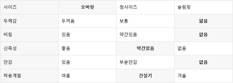 평소 입던 스타일과 달라 만족도가 낮을 수 있습니다