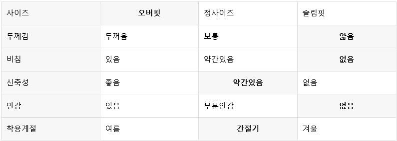 평소 입던 스타일과 달라 만족도가 낮을 수 있습니다