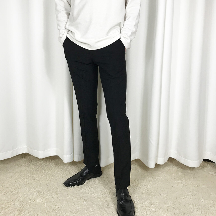 블랙 간절기 슬림 슬랙스
