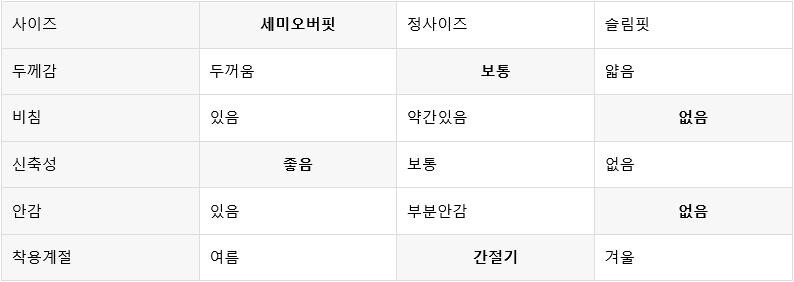 평소 입던 스타일과 달라 만족도가 낮을 수 있습니다