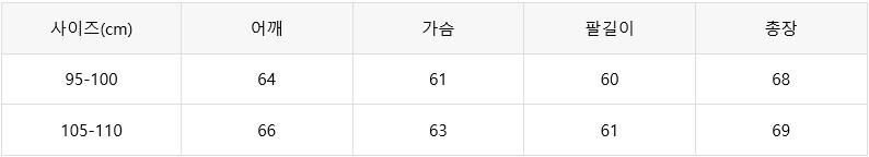 예시)본인사이즈100이면 100-105사이즈 구매 권장
