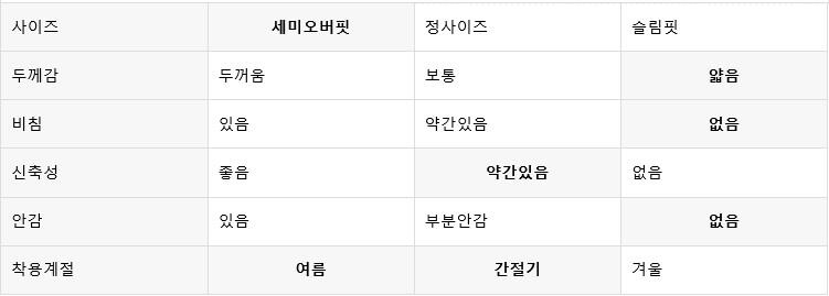 예시)본인사이즈100이면 100-105사이즈 구매 권장