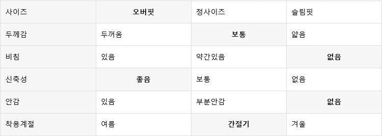 평소 입던 스타일과 달라 만족도가 낮을 수 있습니다