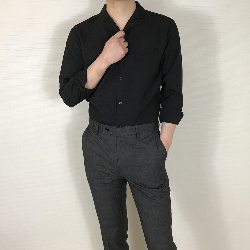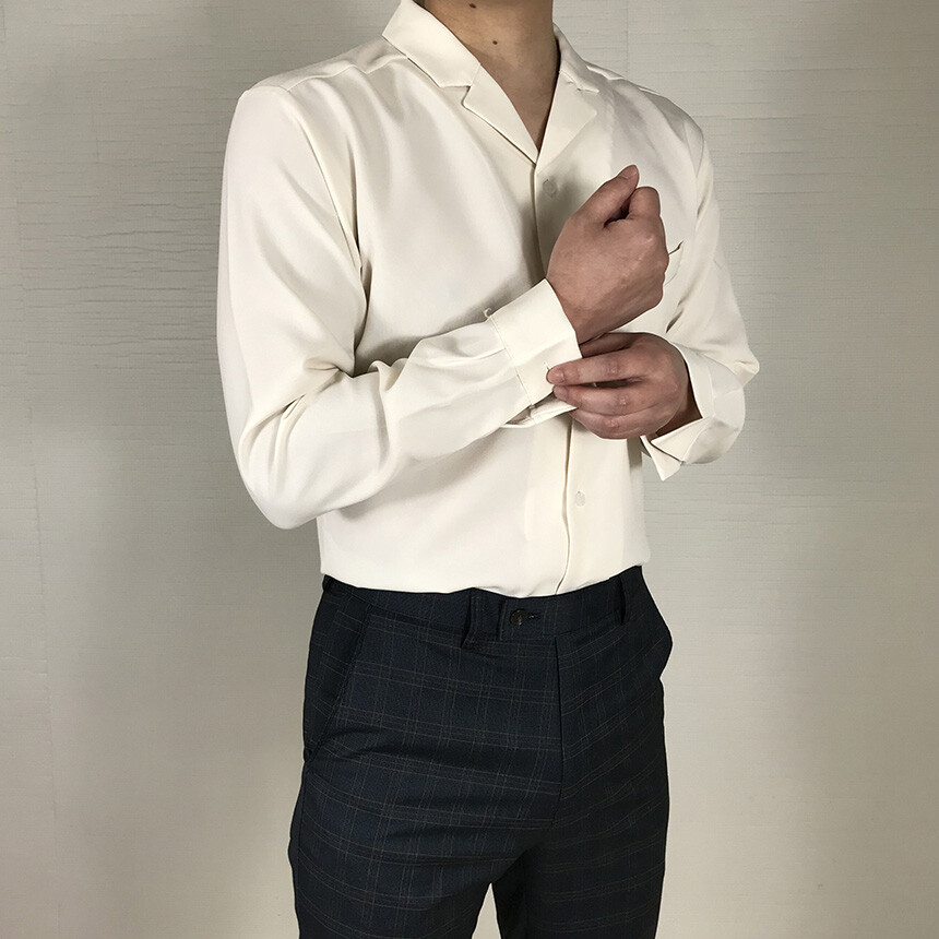 컷어웨이 오픈카라 드레스 셔츠(3col) [BXASLBM0030]