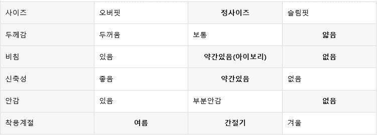 평소 입던 스타일과 달라 만족도가 낮을 수 있습니다